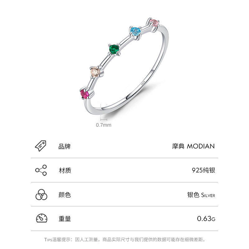 当前位置:首页>商品详情>摩典日韩简约S925纯银镶嵌彩色锆石戒指女精致小巧百搭新款细戒子