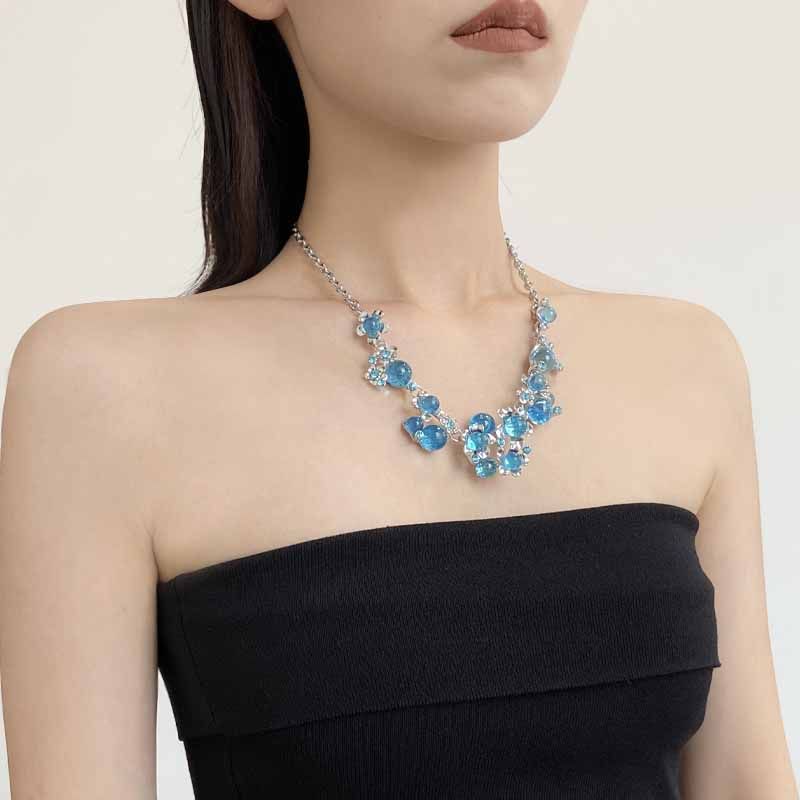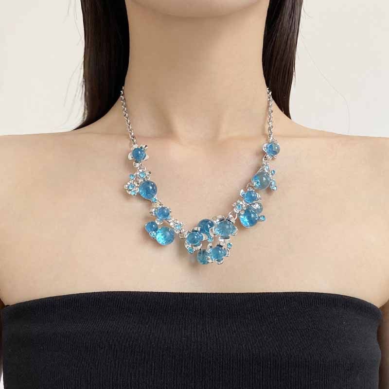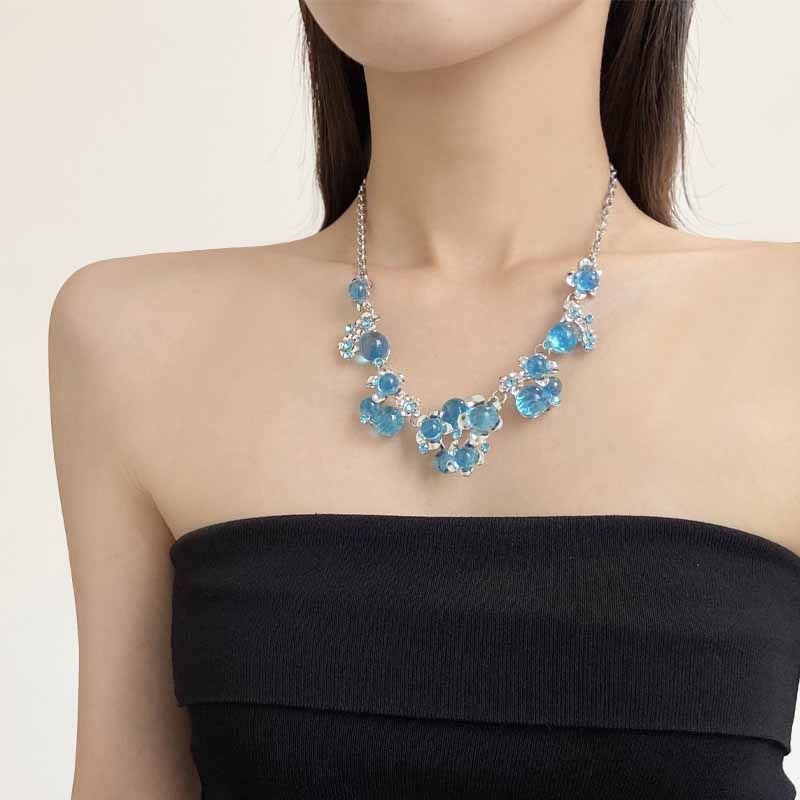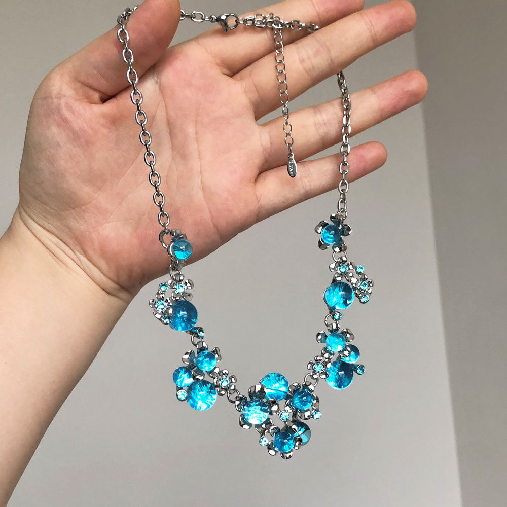 多巴胺冰魄蓝色水晶花朵项链女法式时尚高级感锁骨链甜美百搭颈链