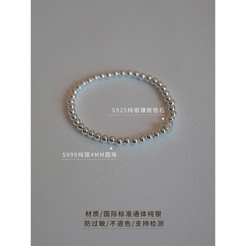 「极简simple」罗马环 自制999纯银锆石圆环银珠手链简约百搭