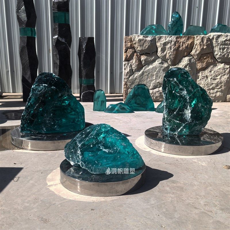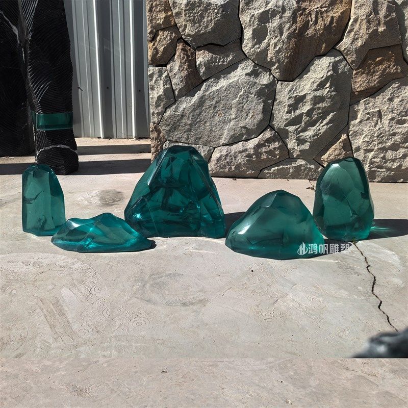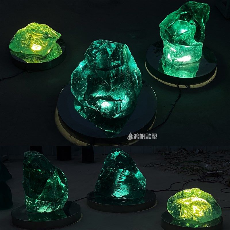 玻璃石雕塑亮化灯饰大型落地摆件户外水晶景观石装饰品抽象艺术装