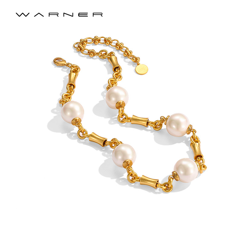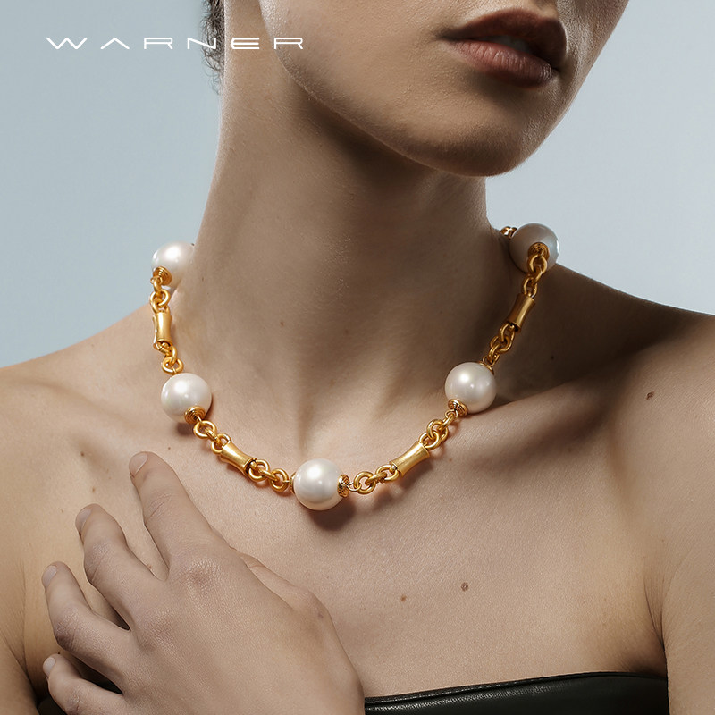 Joseph Warner中古项链珍珠链复古夸张设计感欧美金属风锁骨链女