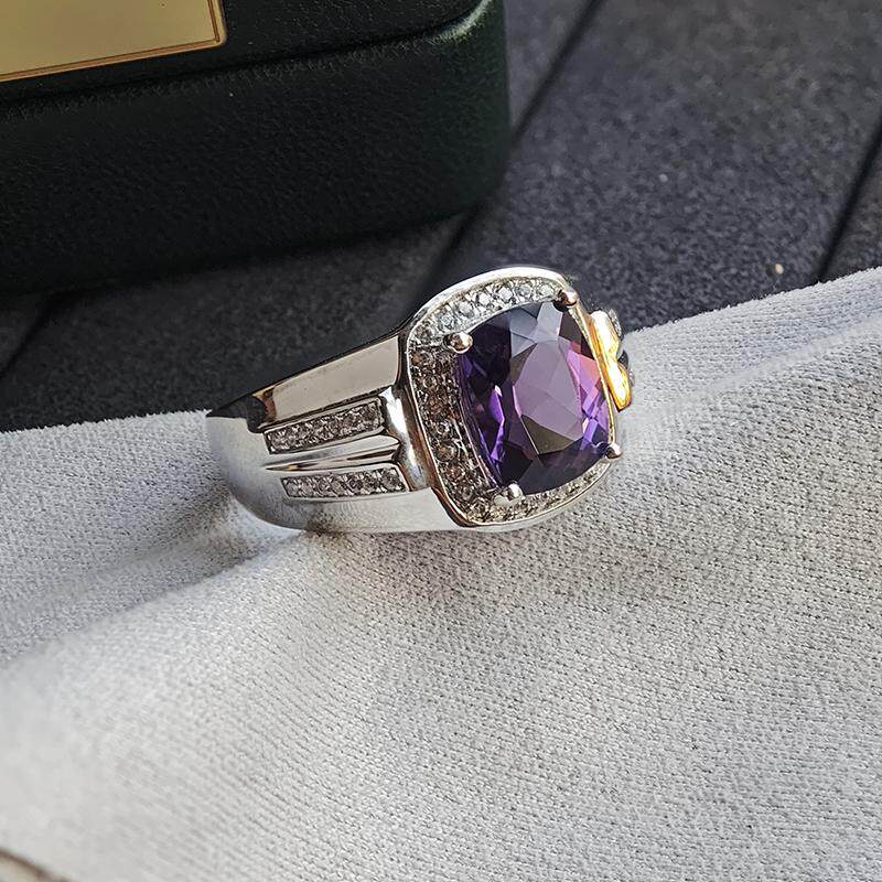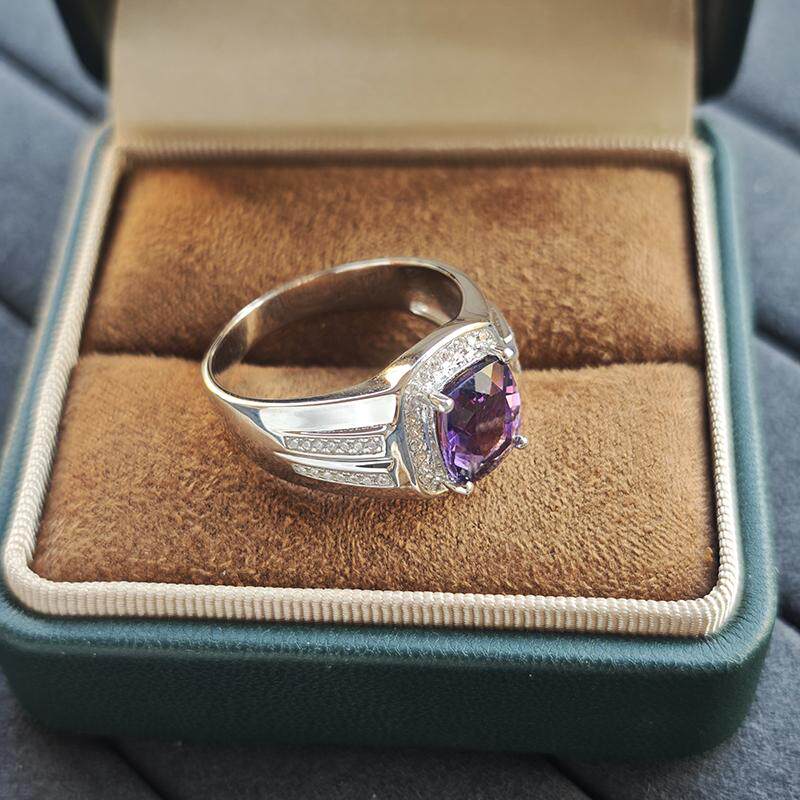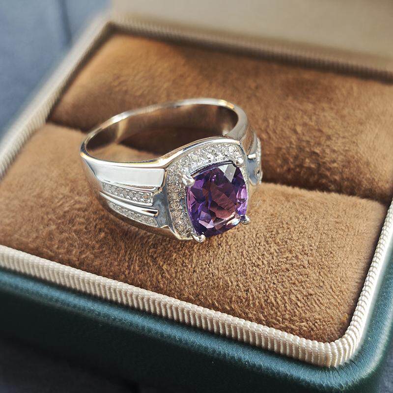 轻奢小众天然紫水晶925纯银镶嵌宝石戒指男潮人时尚礼物个性大码