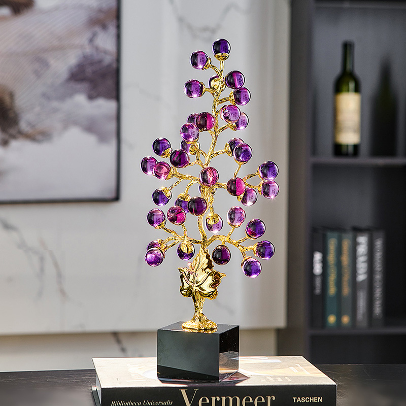 创意紫水晶招财葡萄摆件客厅玄关桌面装饰N轻奢酒柜工艺礼品摆饰