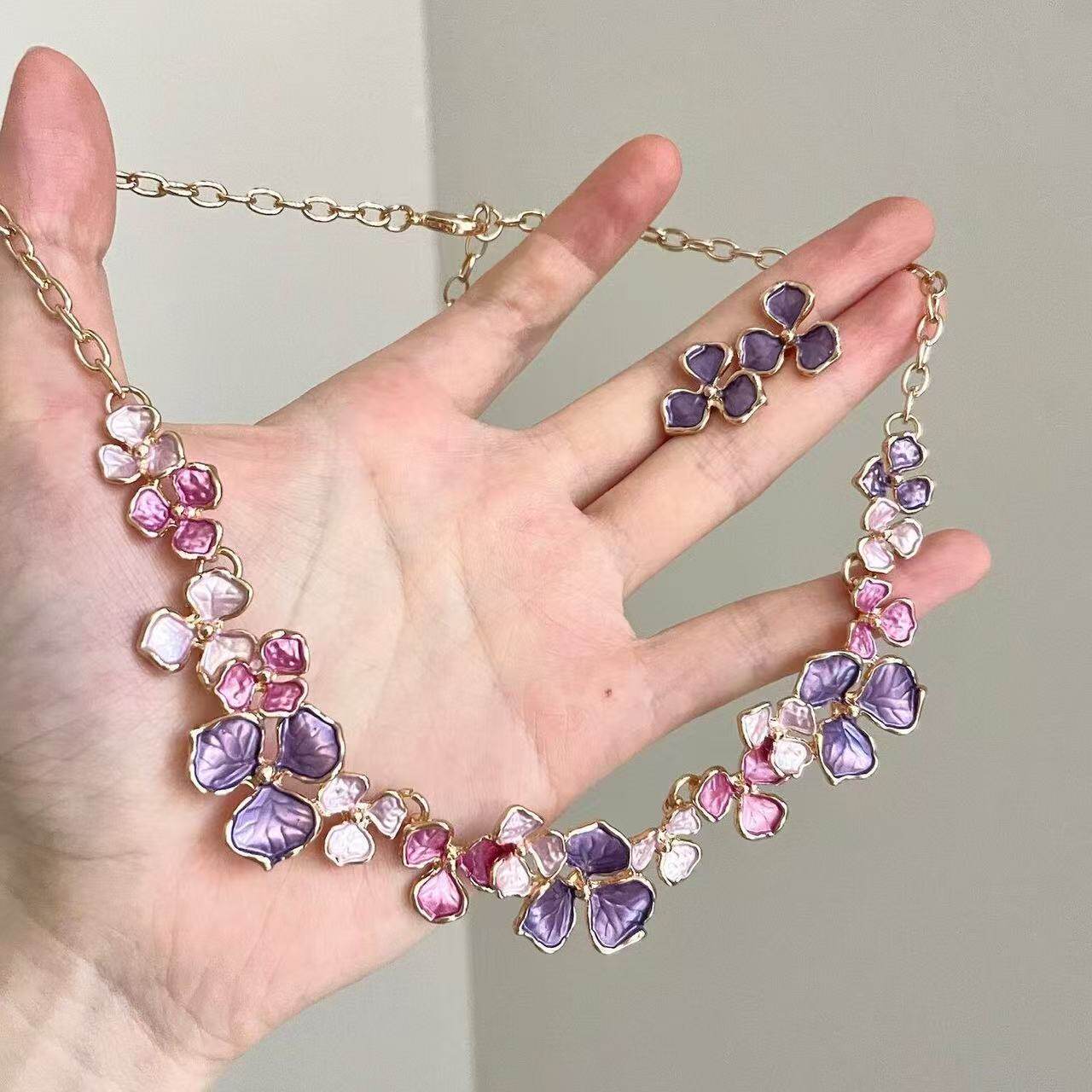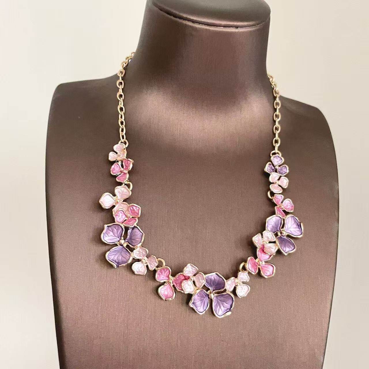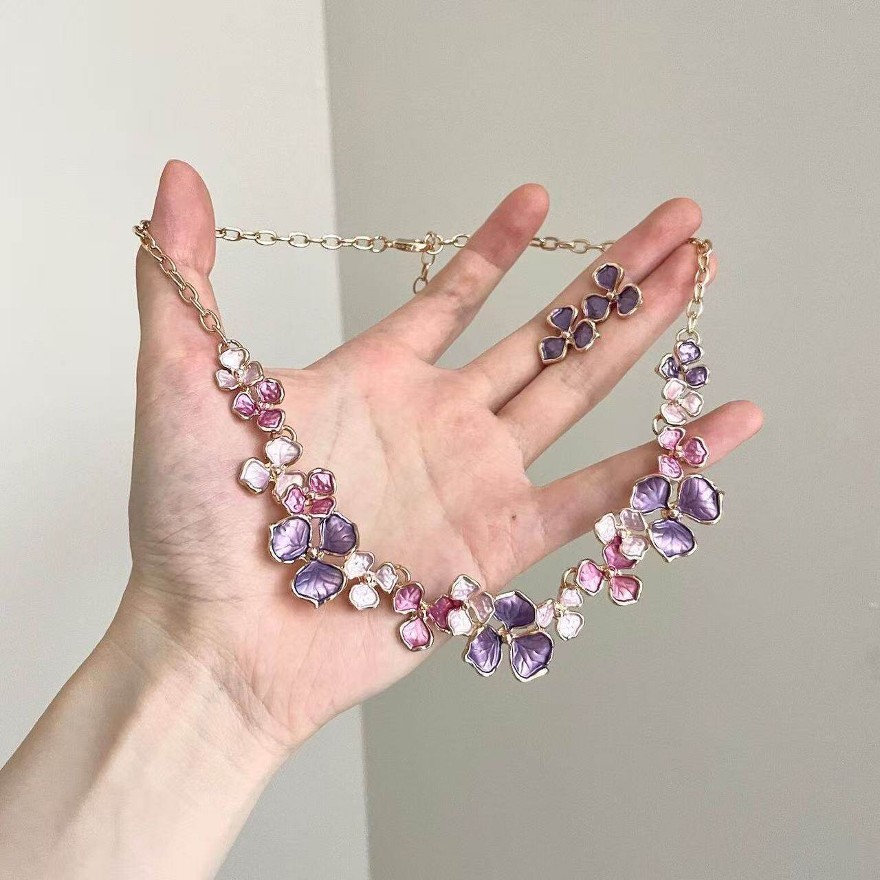 紫色花朵珐琅彩项链高级感轻奢小众独特气质新中式重工中古锁骨链