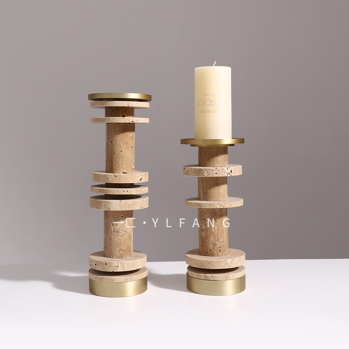一匚 法式复古大理石烛台装饰摆件 酒店样板间家居台面装饰品