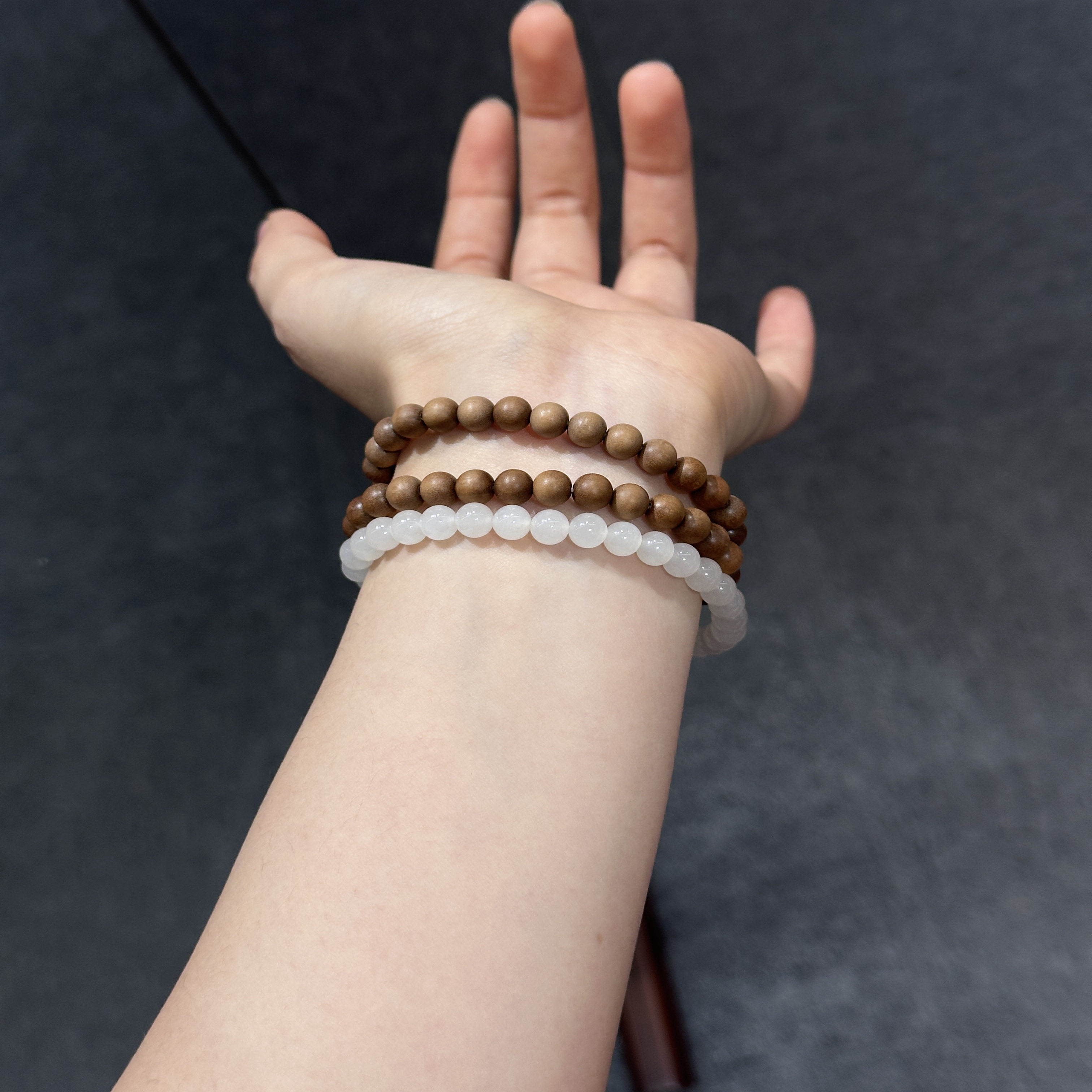 一念·设计「晚烟」天然和田玉+老山檀南红蜜蜡手串 货号12526