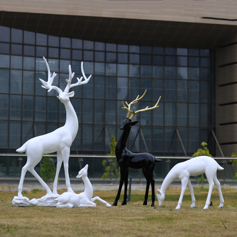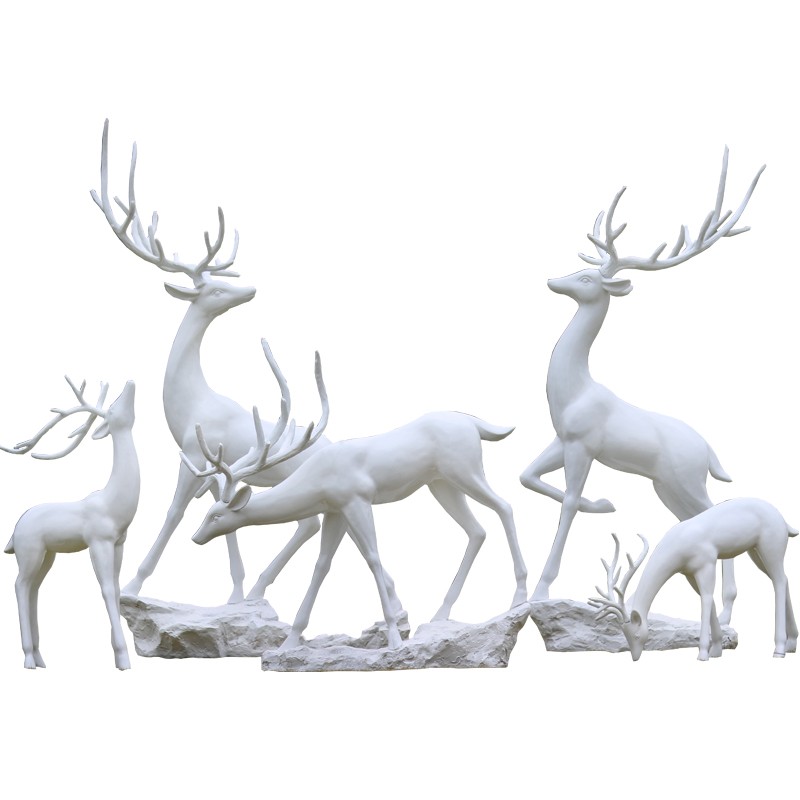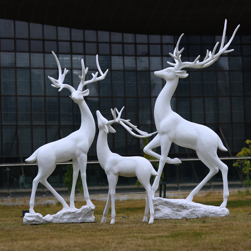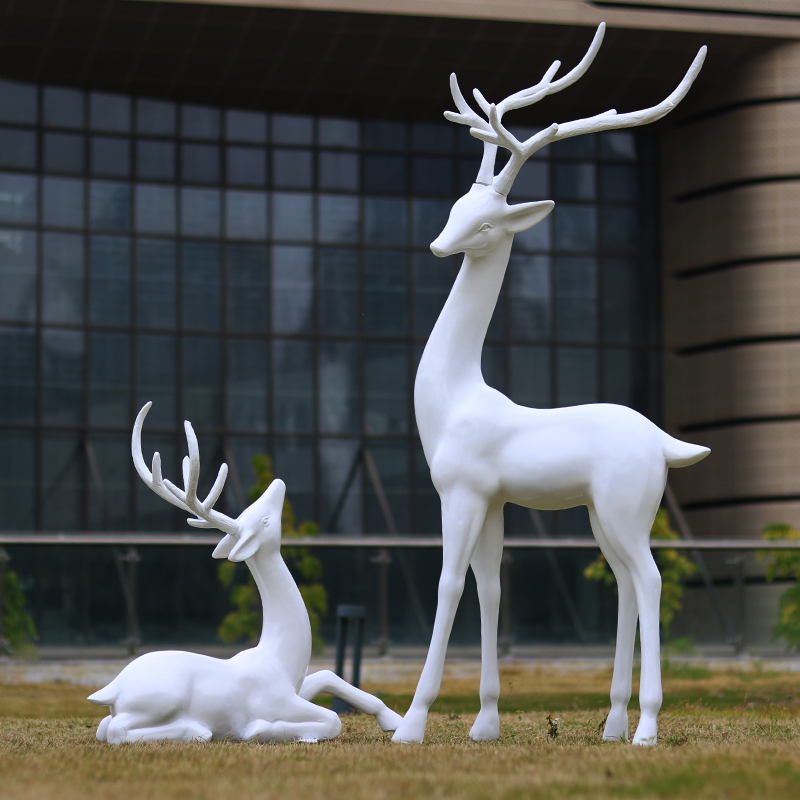 户外玻璃钢动物雕塑白色鹿摆件营销中心景区园林草坪会所造景装饰