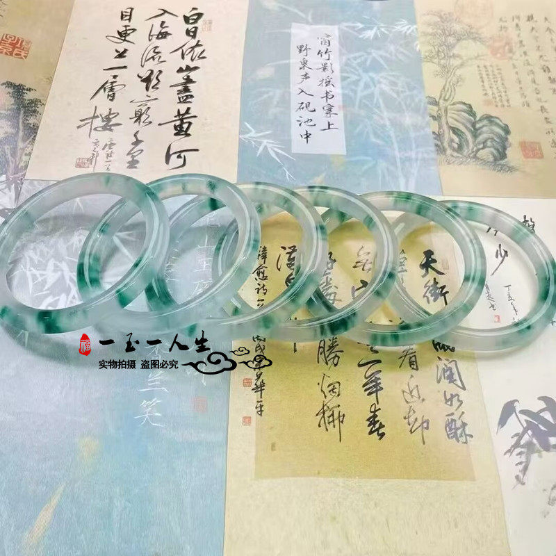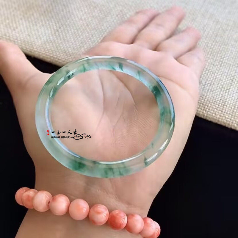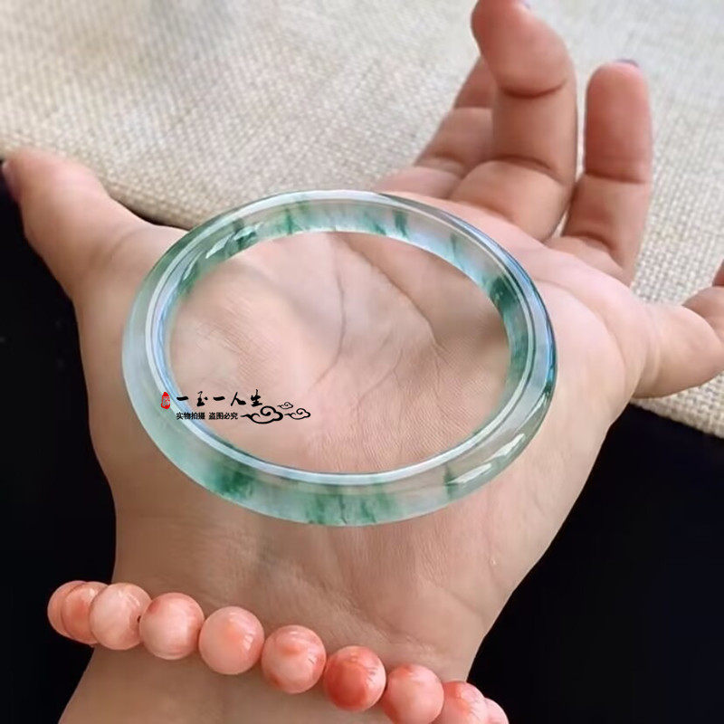 怒江冰种飘绿花手镯石英岩玉细圆条美人镯子独龙玉少女叮当镯