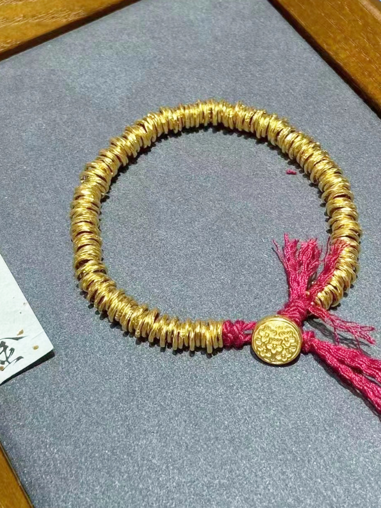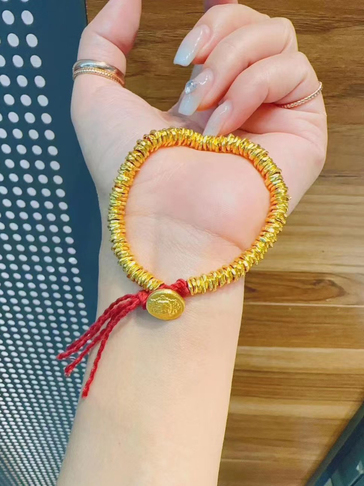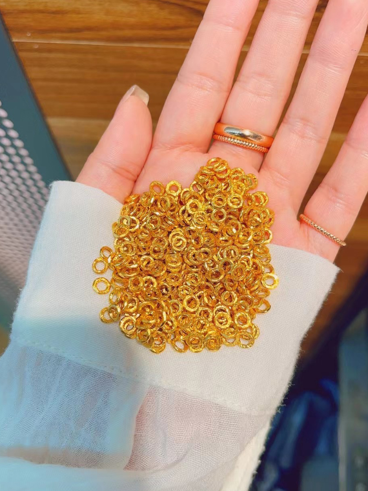 999足金小金片隔珠手链古法黄金实心配件隔圈手链项链纯金小金圈
