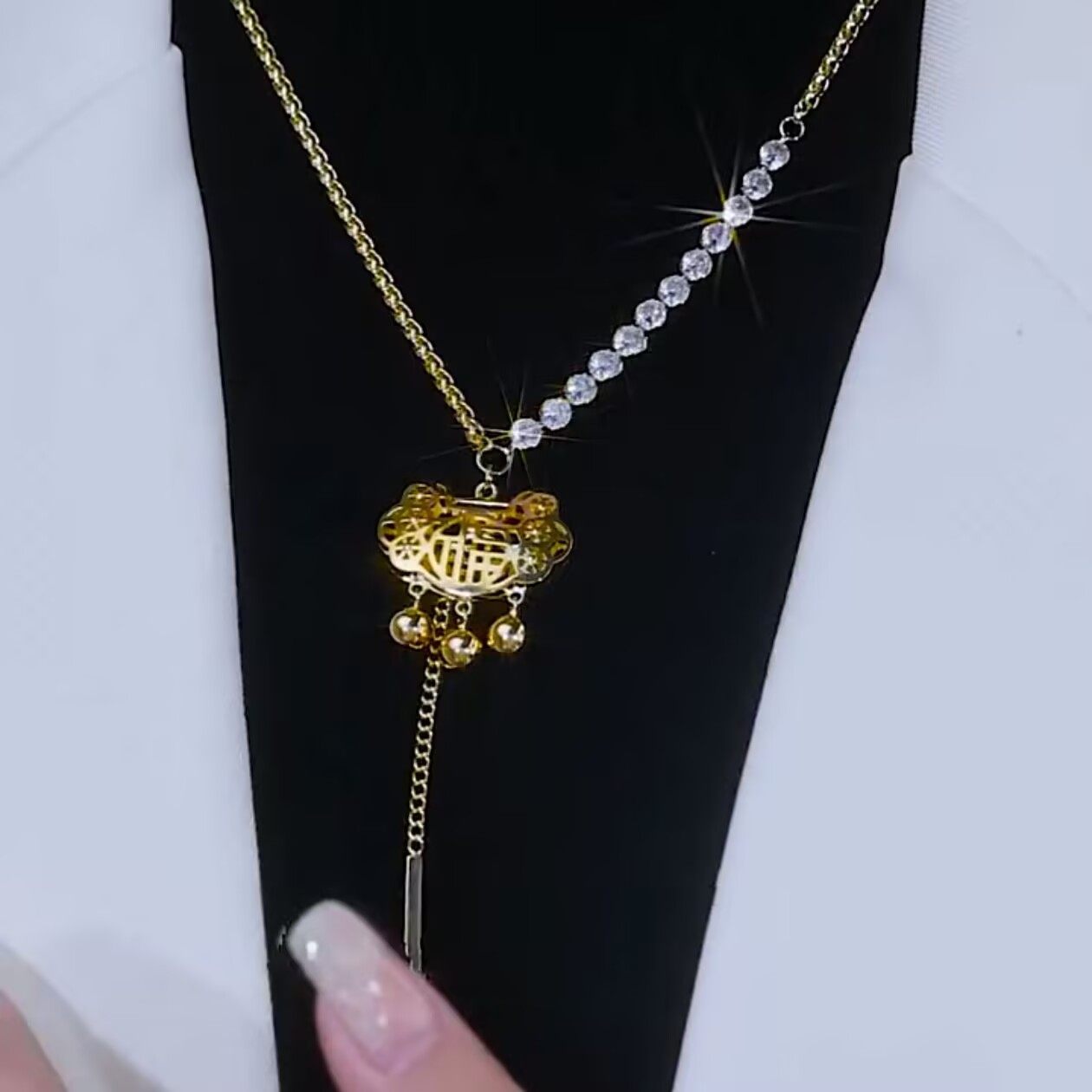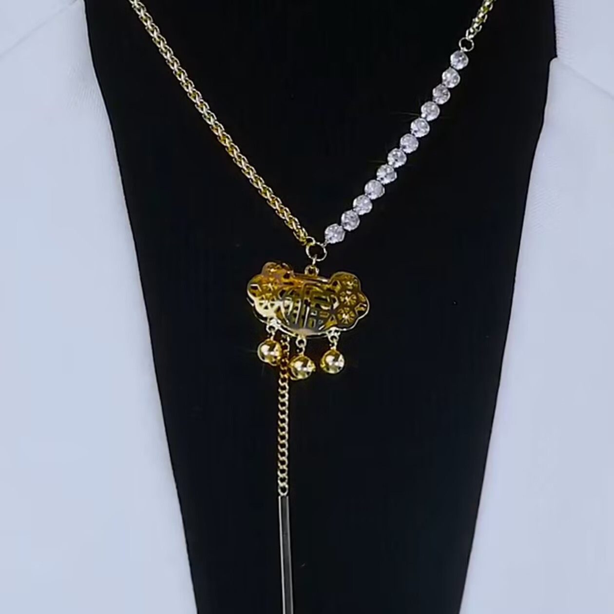 新款金色镂空福字流苏毛衣链网红爆款轻奢气质百搭精美爆款毛衣链
