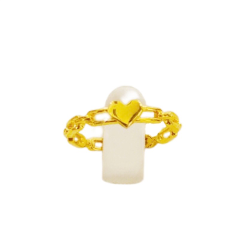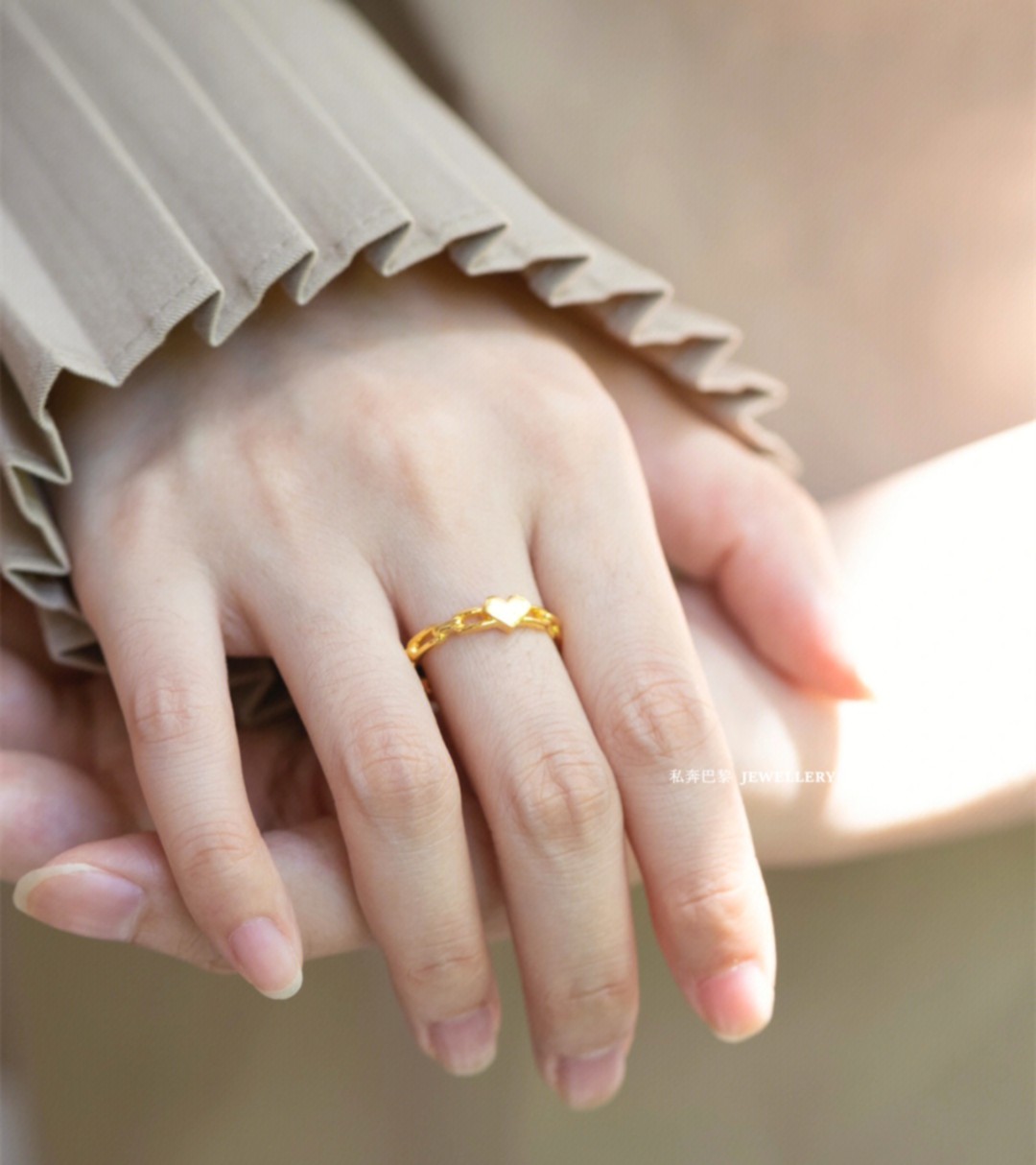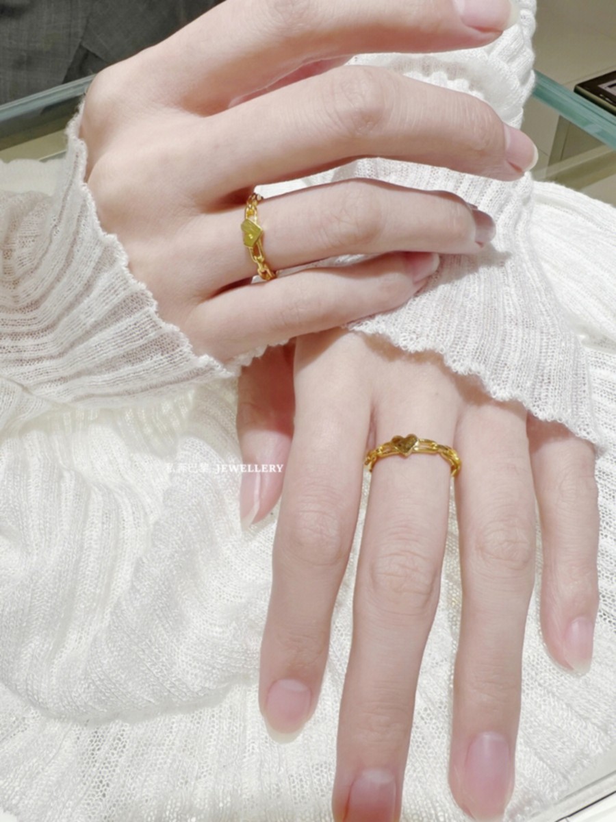 环环相扣18K金爱心戒指女黄金纯银ins风几何链条心形指环足金礼物