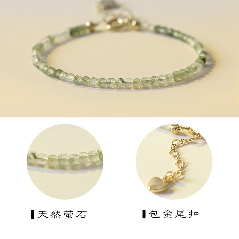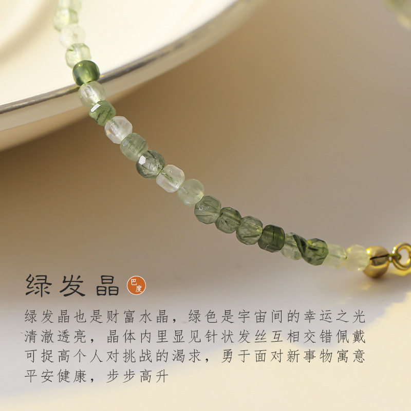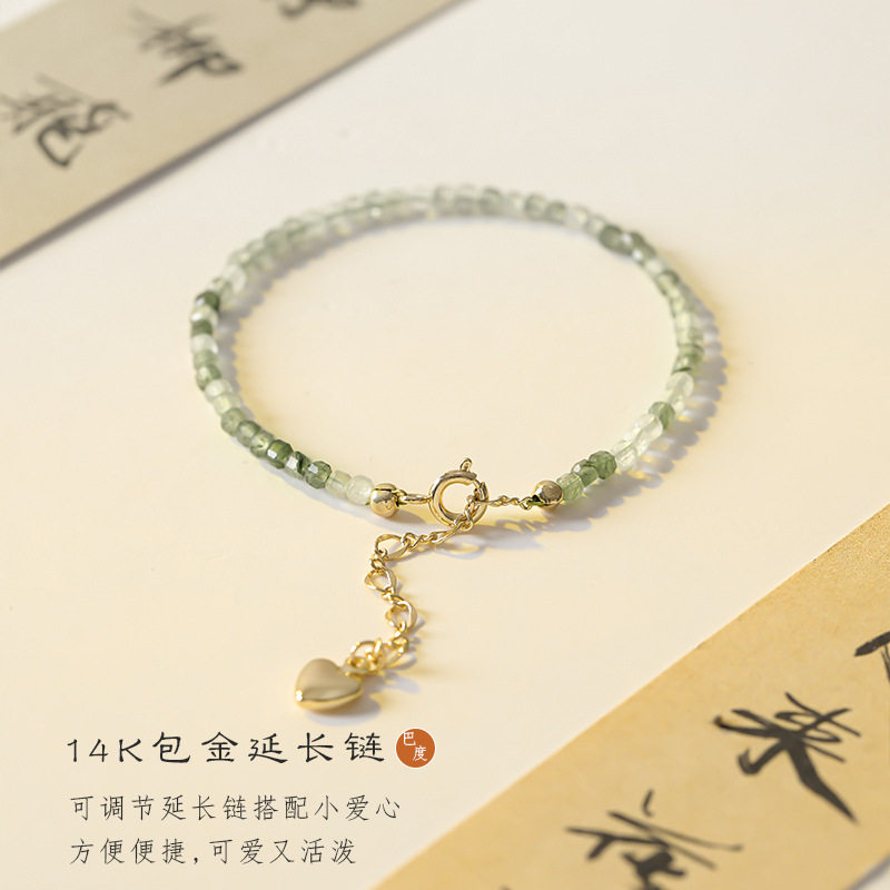 巴度绿发金14K镀金手链手饰品小众礼物绿色招财转运珠女复古ins风