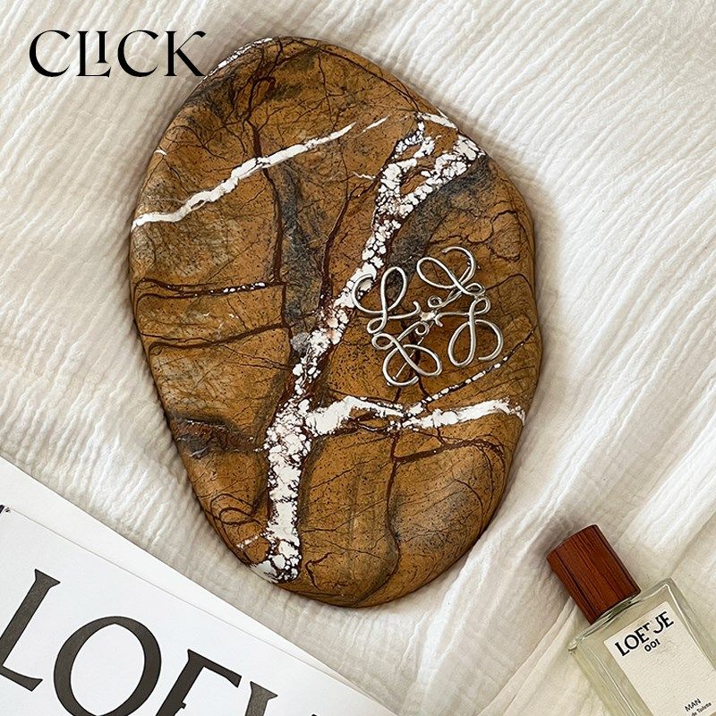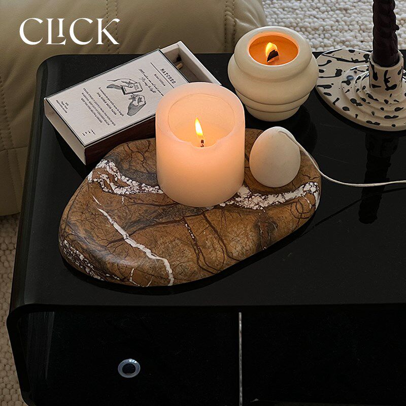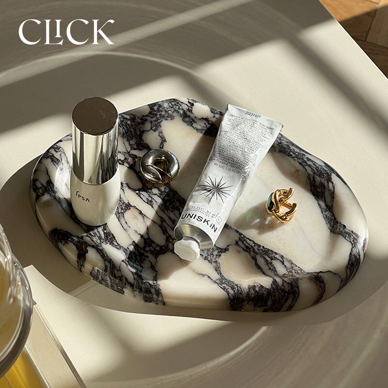 新品click天然大理q石头装饰置物托盘摆件轻奢宝格丽桌面首饰蜡烛