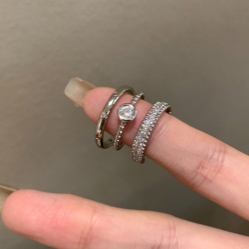 素圈锆石开口戒指组合女轻奢小众高级感叠戴食指戒冷淡风装饰指环