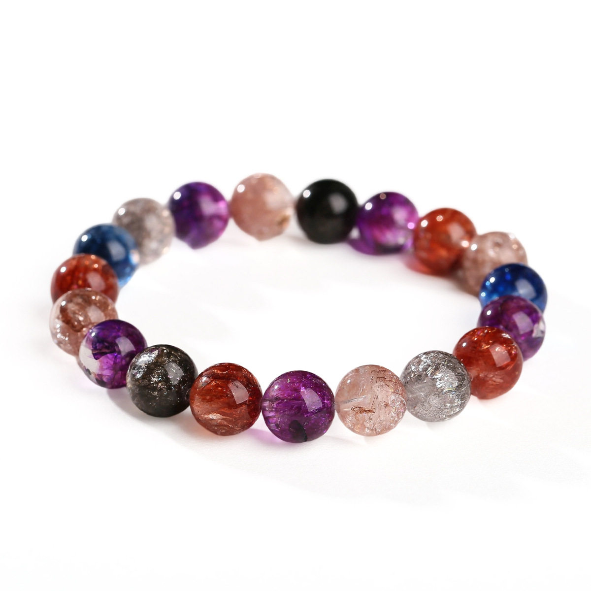 彩色烟花超七手链女烟花超七单圈圆珠轻奢小众水晶手串爆闪聚宝盆