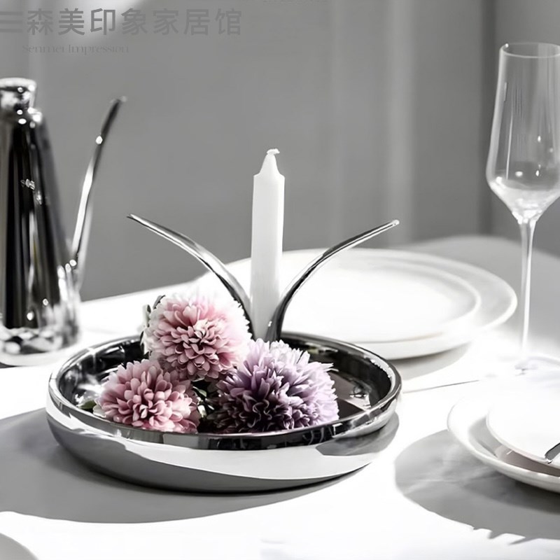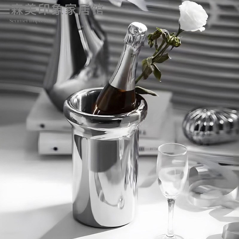 现代轻奢样板房水吧台茶几不锈钢托盘冰桶香N槟杯餐厅组合摆件装