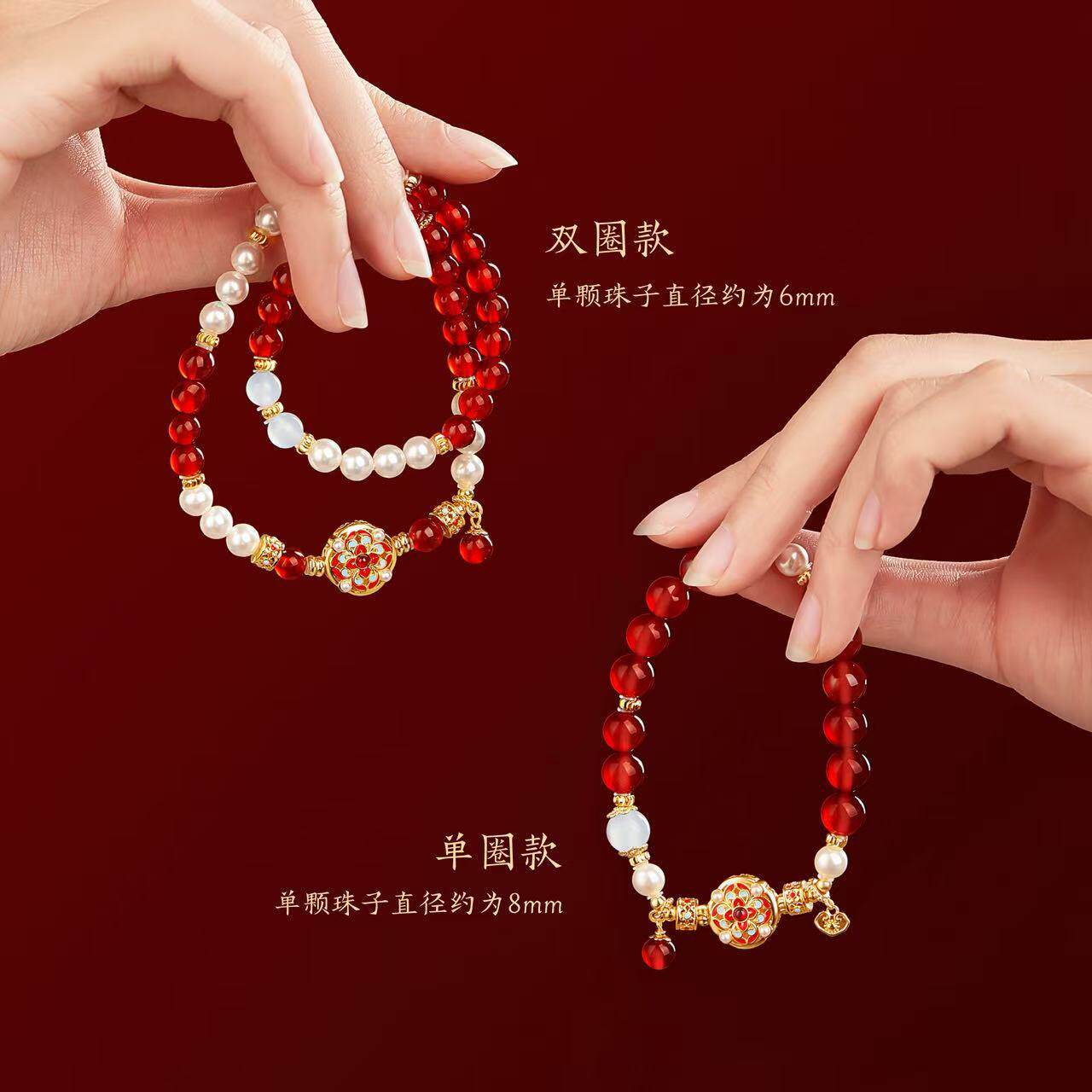 故宫宝相花红玛瑙手链红色手串文创新年本命年生日礼物女生