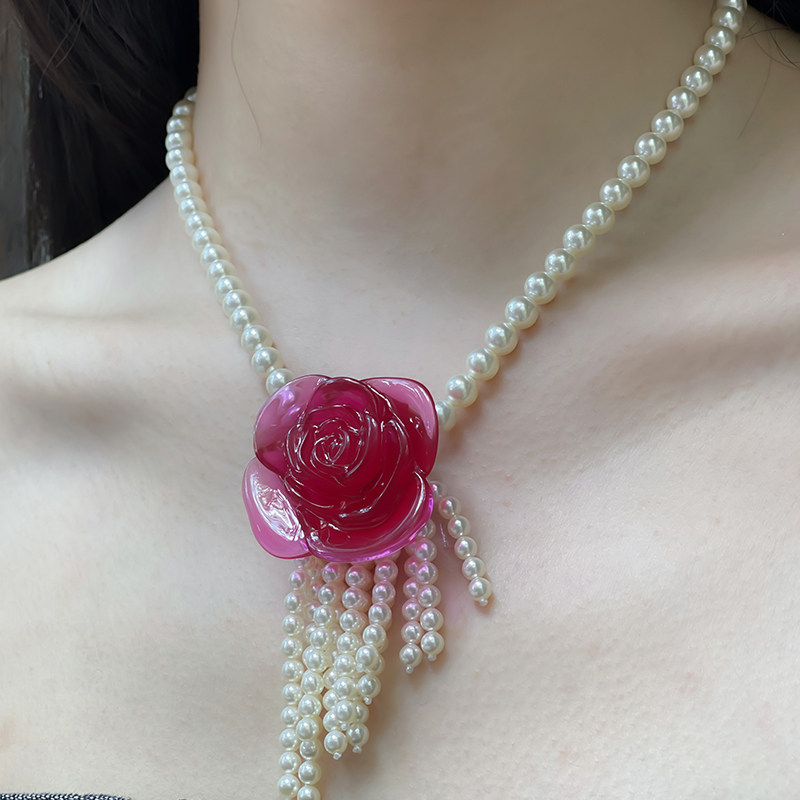 【限时4折】XTASTE USELESSOBJECTS 玫瑰花珍珠项链锁骨链设计感