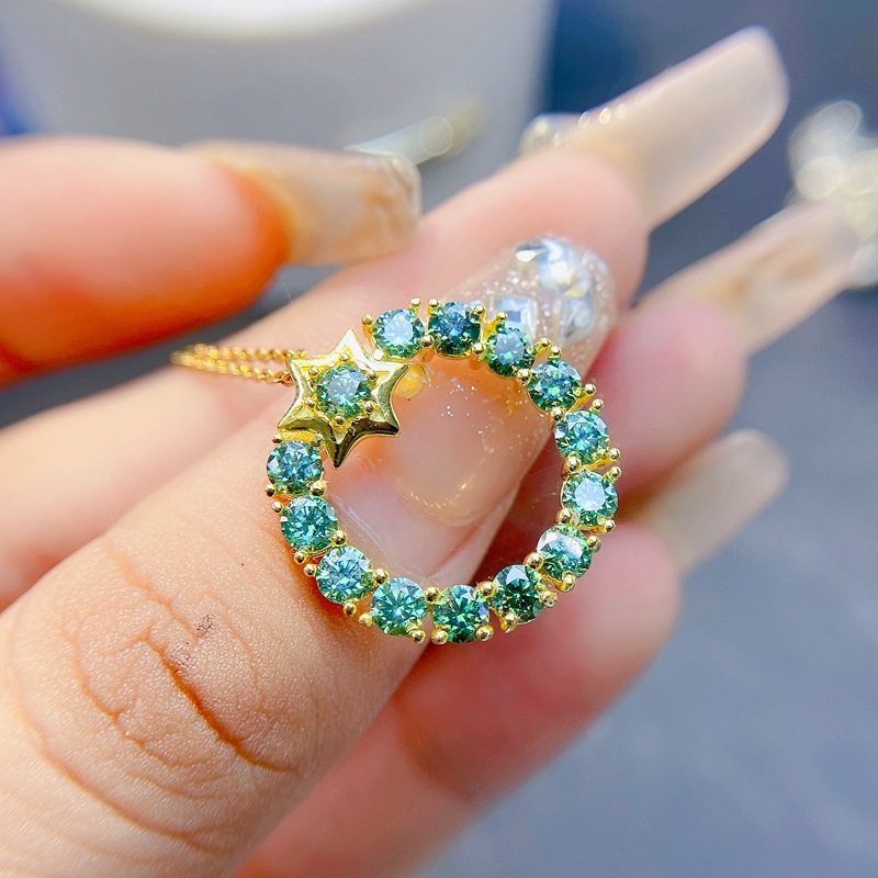 realtreasure绿色莫桑钻吊坠 主石3*3mm女士坠