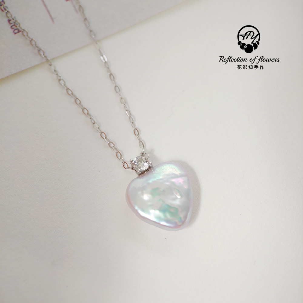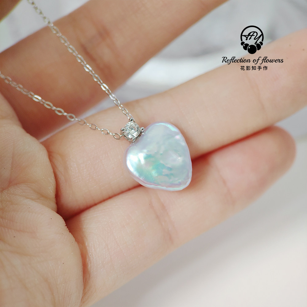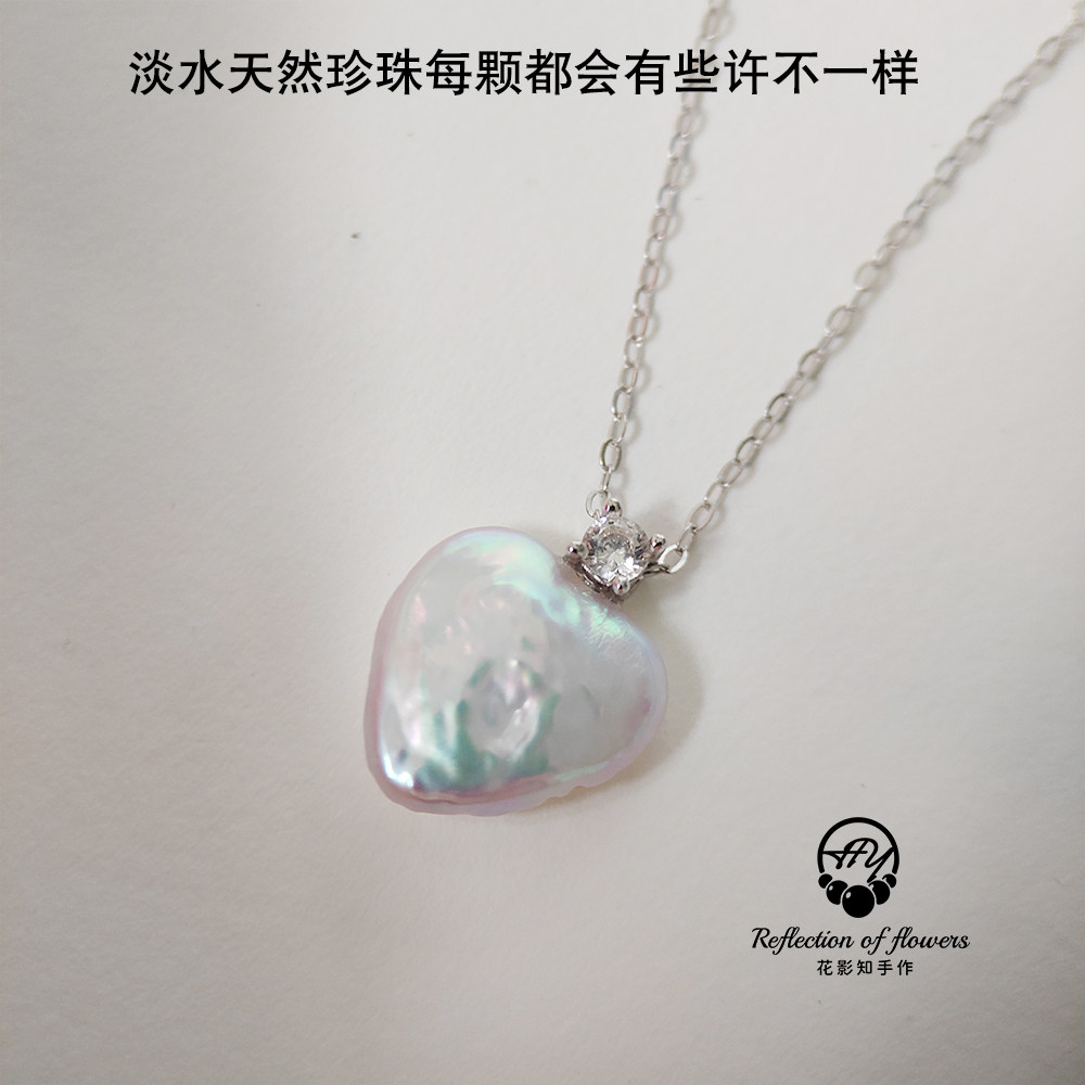 天然淡水珍珠白色炫彩爱心王妃吊坠s925银吊坠锁骨链简约520礼物