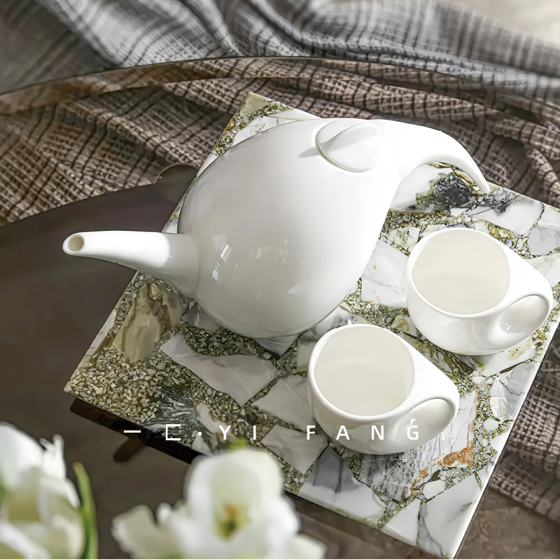 一匚现代极简样板间创意白色陶瓷茶具茶杯售楼处酒店会所茶几饰品
