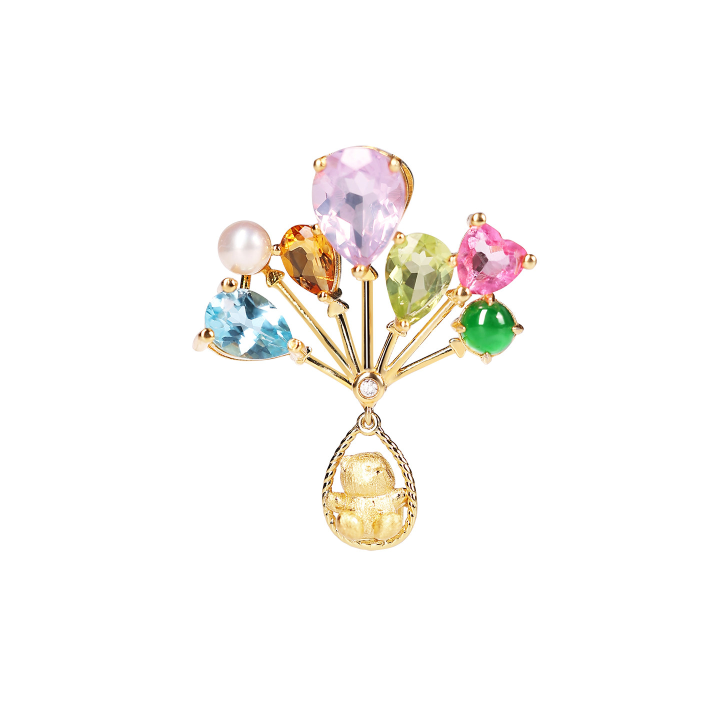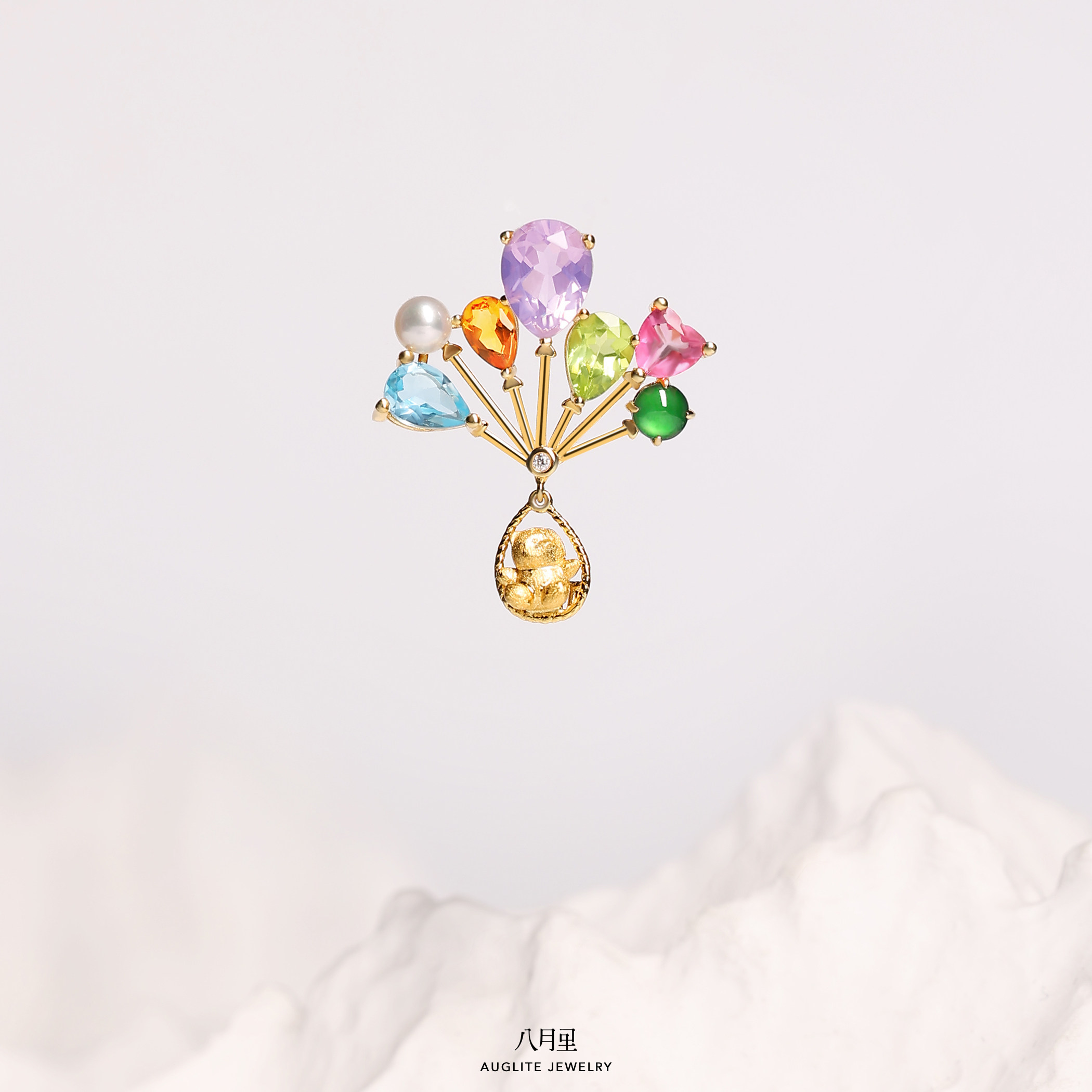 小熊系列一环游地球80天 天然翡翠珍珠白蓝宝水晶925银镀金吊坠女