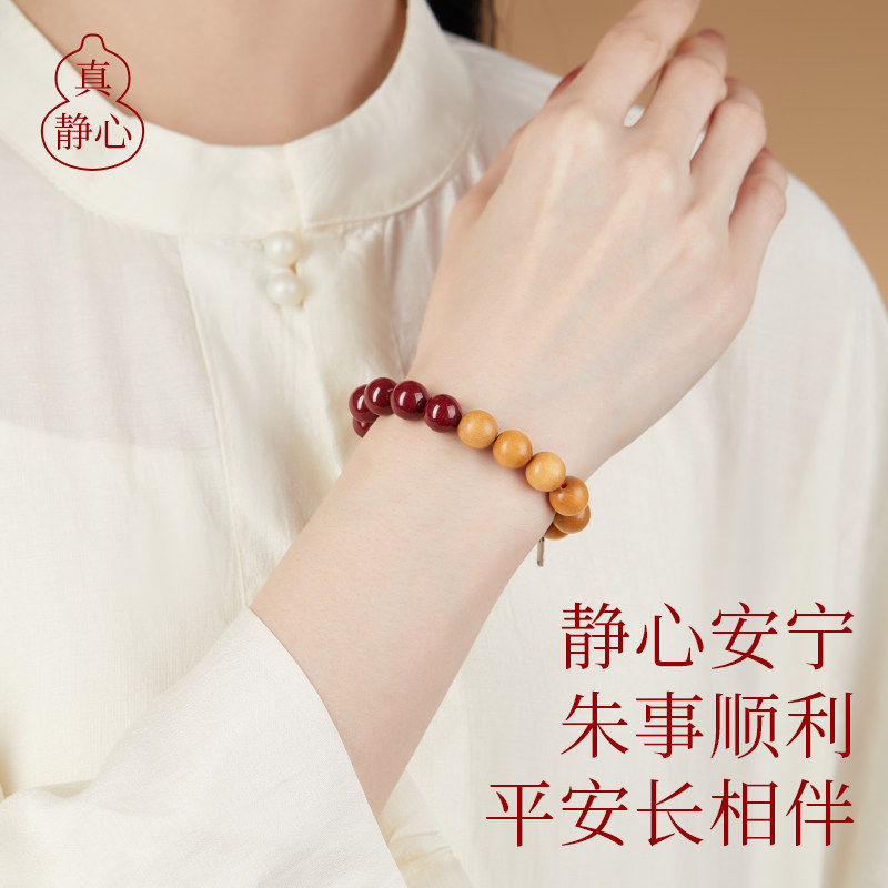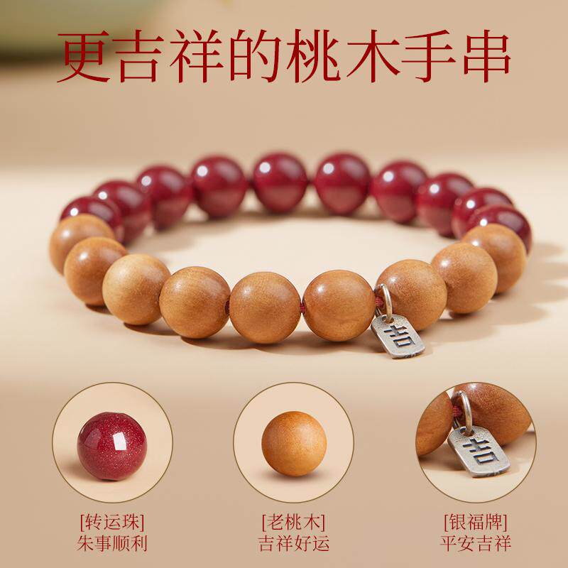 2026马年真品桃木朱砂手串女士本命年好运福牌手链平安护身符男士