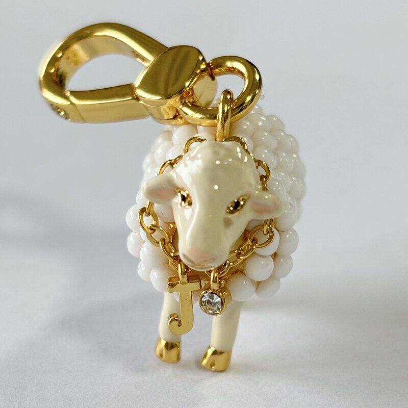新款跨境珐琅釉立体白色绵羊吊坠萌宠动物系列百搭钥匙扣锁骨链潮