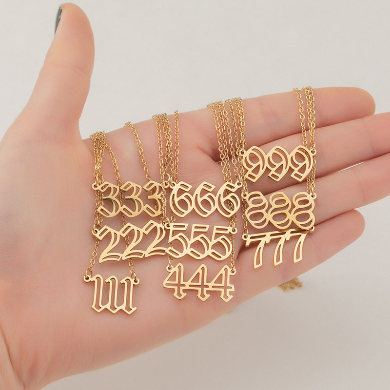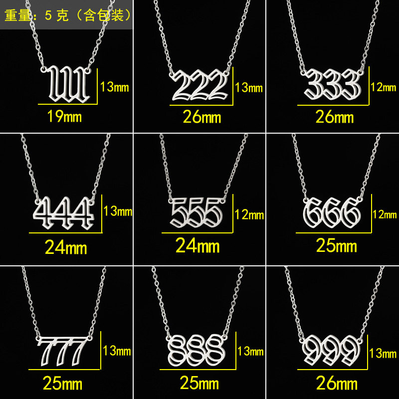 跨境ins风 时尚双层镂空Angel numbers复古数字吊坠项链
