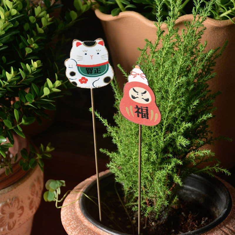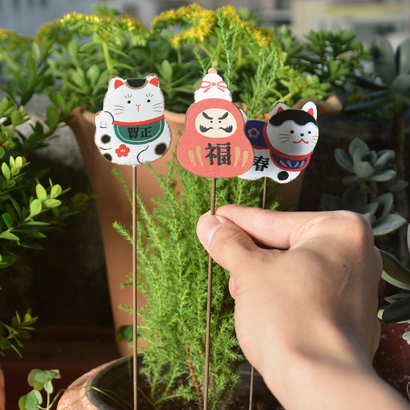 花园标签插牌招财猫铁艺插件花盆装饰品地插花园花插铁牌日系复古