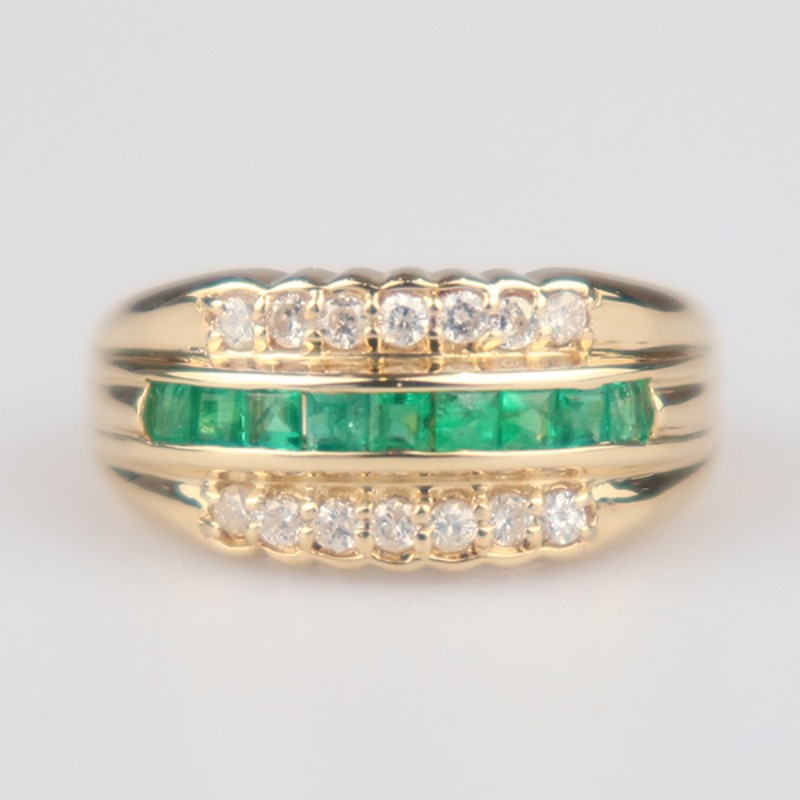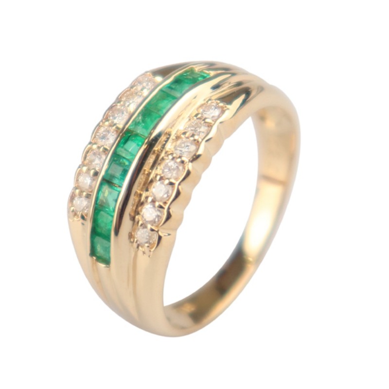 【自营】中古95新日本进口商品群镶祖母绿钻石戒指K18黄金51号