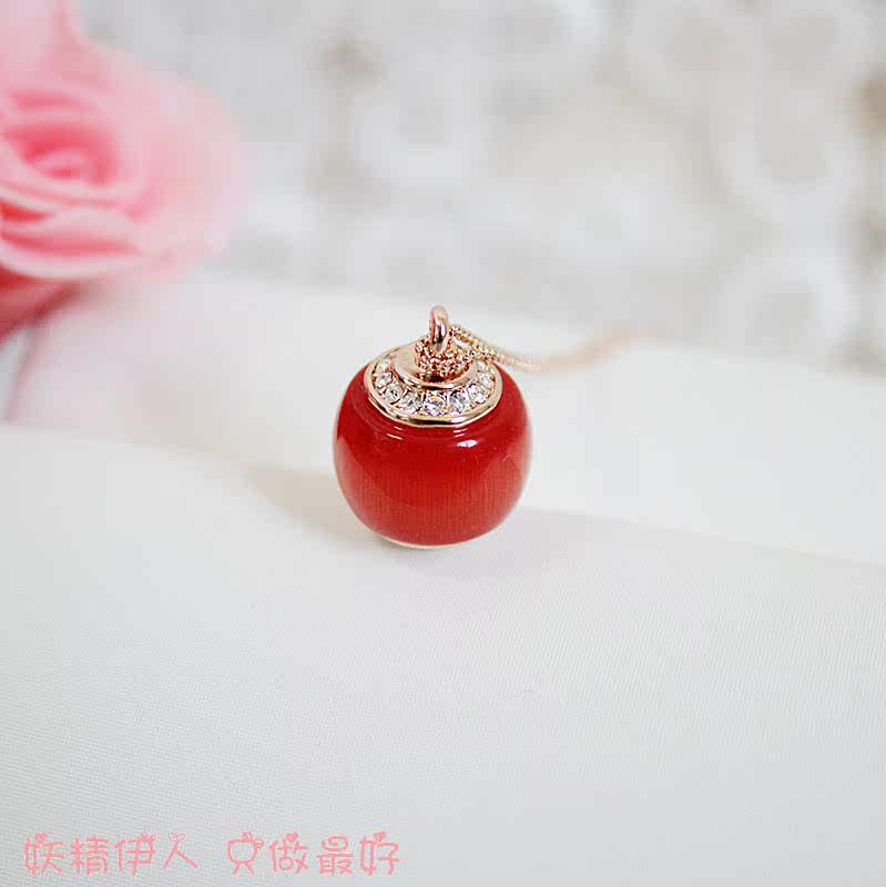 威妮华玫瑰金qc 红宝石灯笼新款短链项链防过敏限量包邮