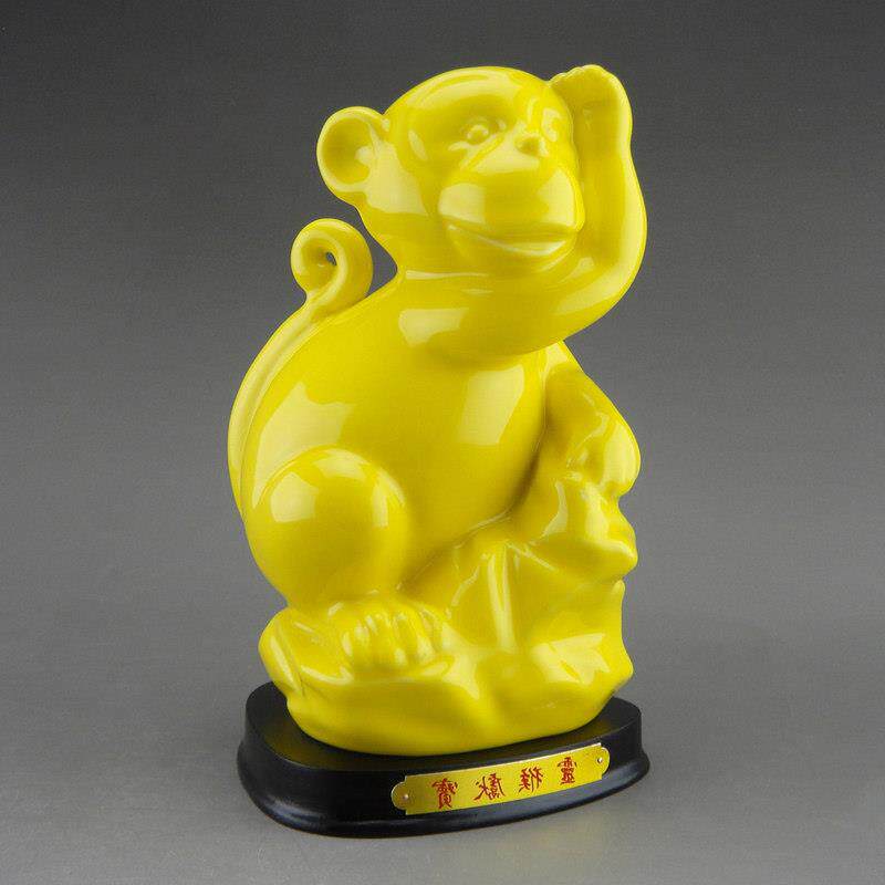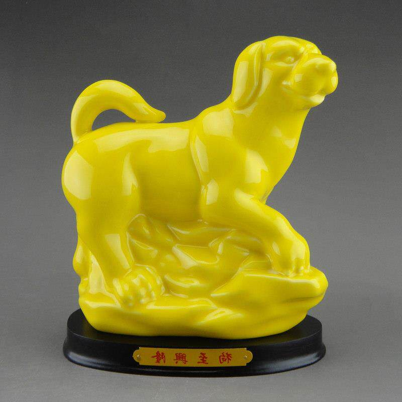 陶瓷黄色十二生肖老鼠牛虎兔蛇马羊猴鸡狗猪龙风水镇宅瓷器摆件