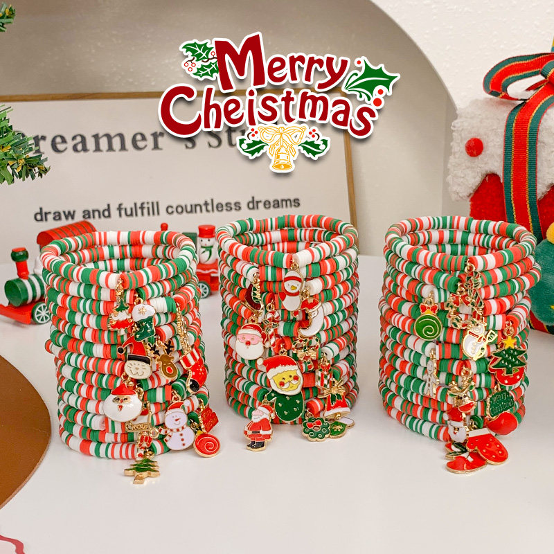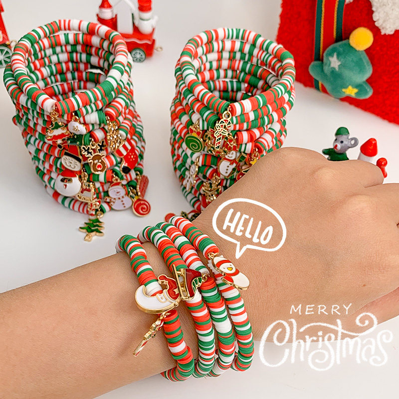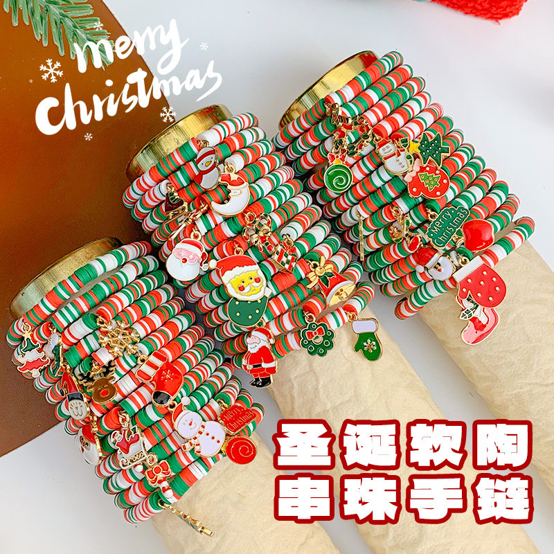 圣诞节彩色编织手链软陶串珠手饰卡通装饰男女通用手绳小礼物批发