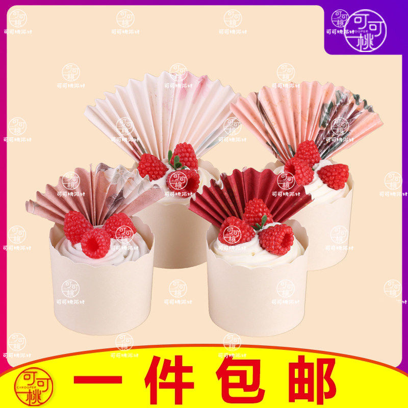 新款国风蛋糕装饰木棉纸折扇中式周岁生日甜品台装扮纸杯插件扇子