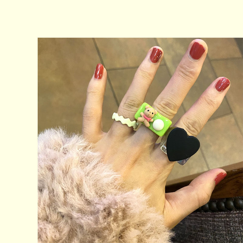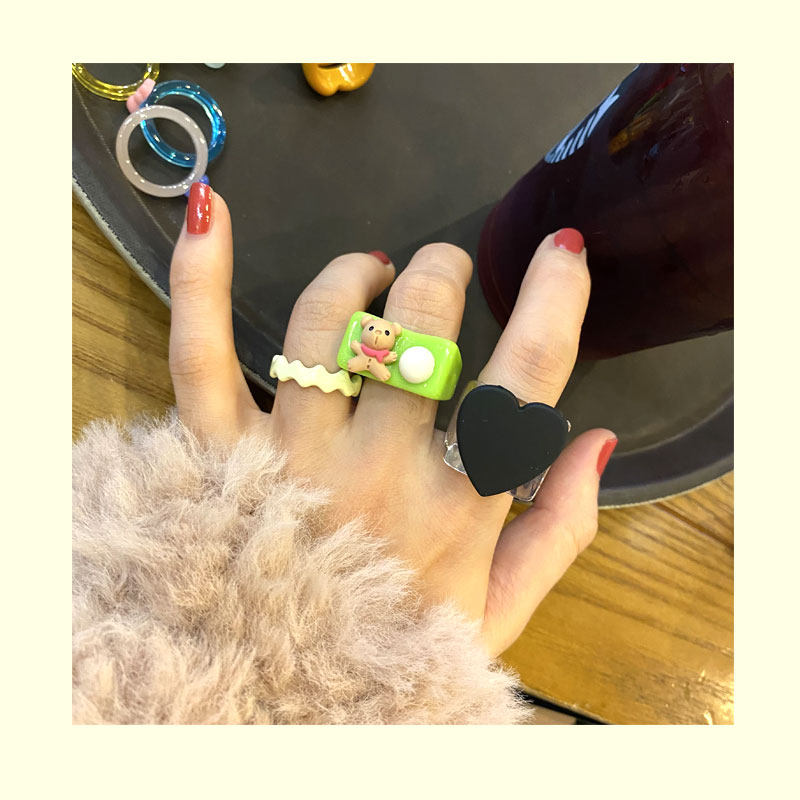GREEN新品精致小熊爱心戒指时尚开口简约卡通个性指环