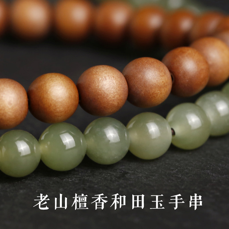 印度老山檀手串女男士天然和田玉手链原香木佛珠文玩配饰貔貅正品