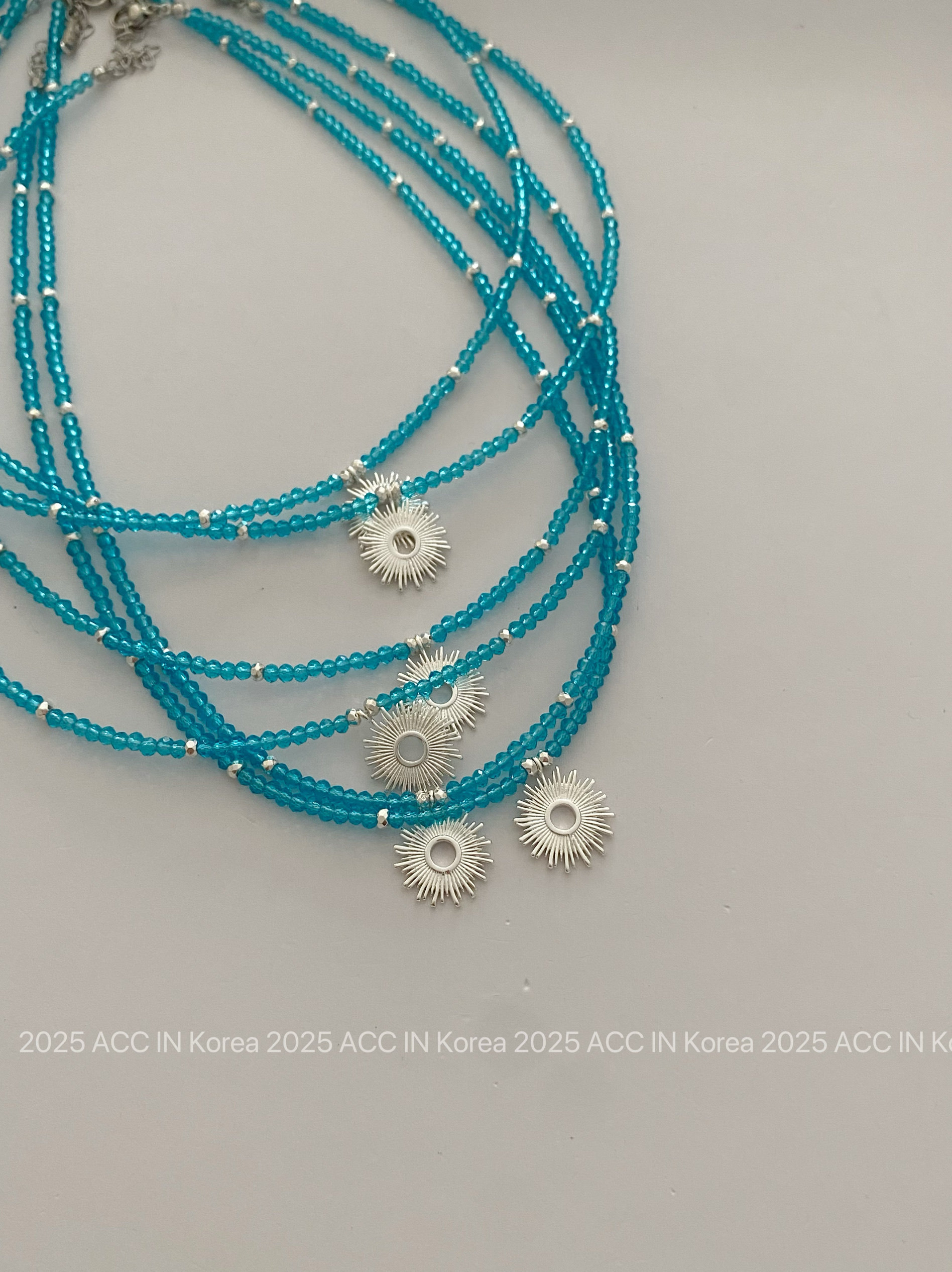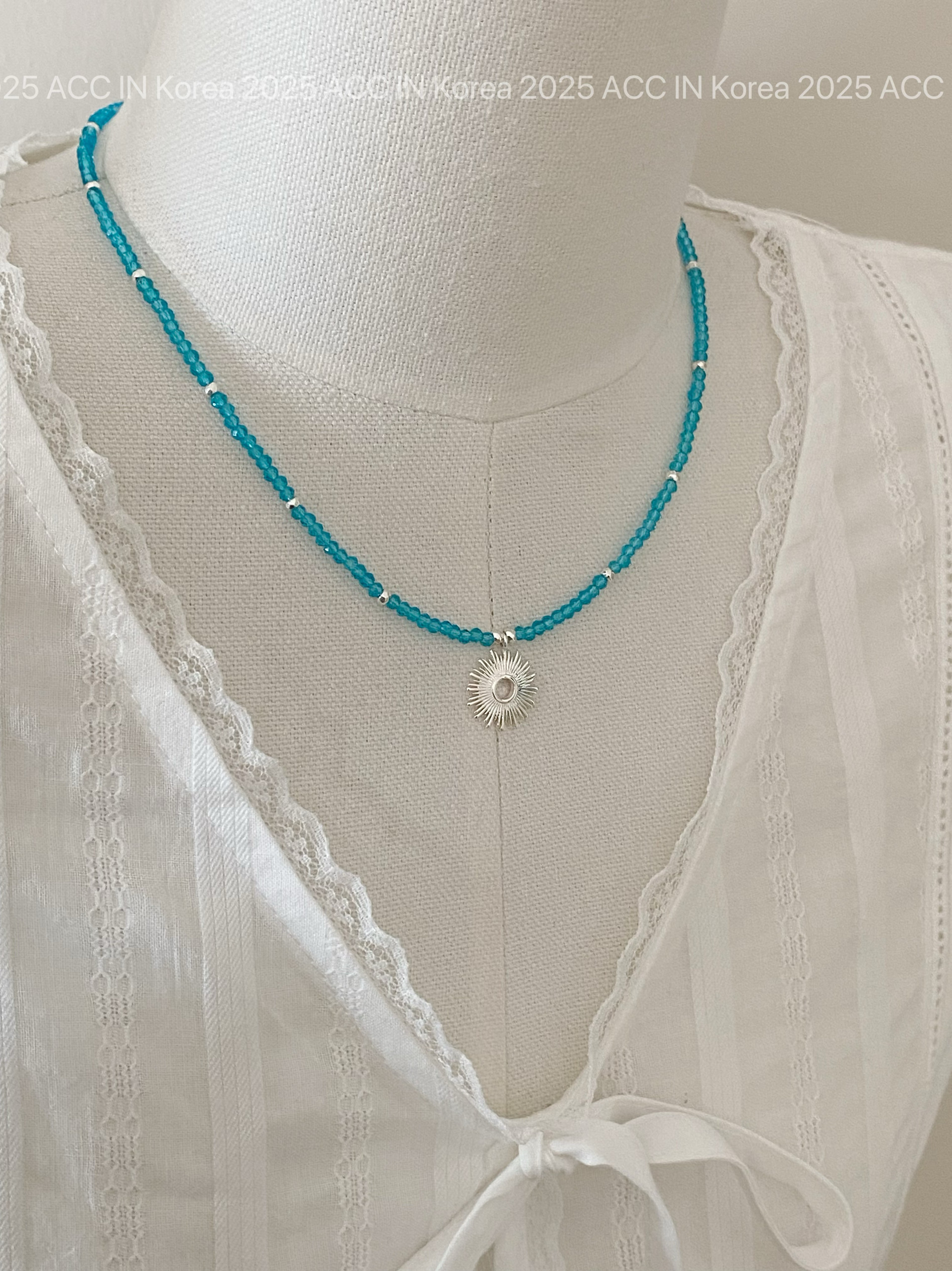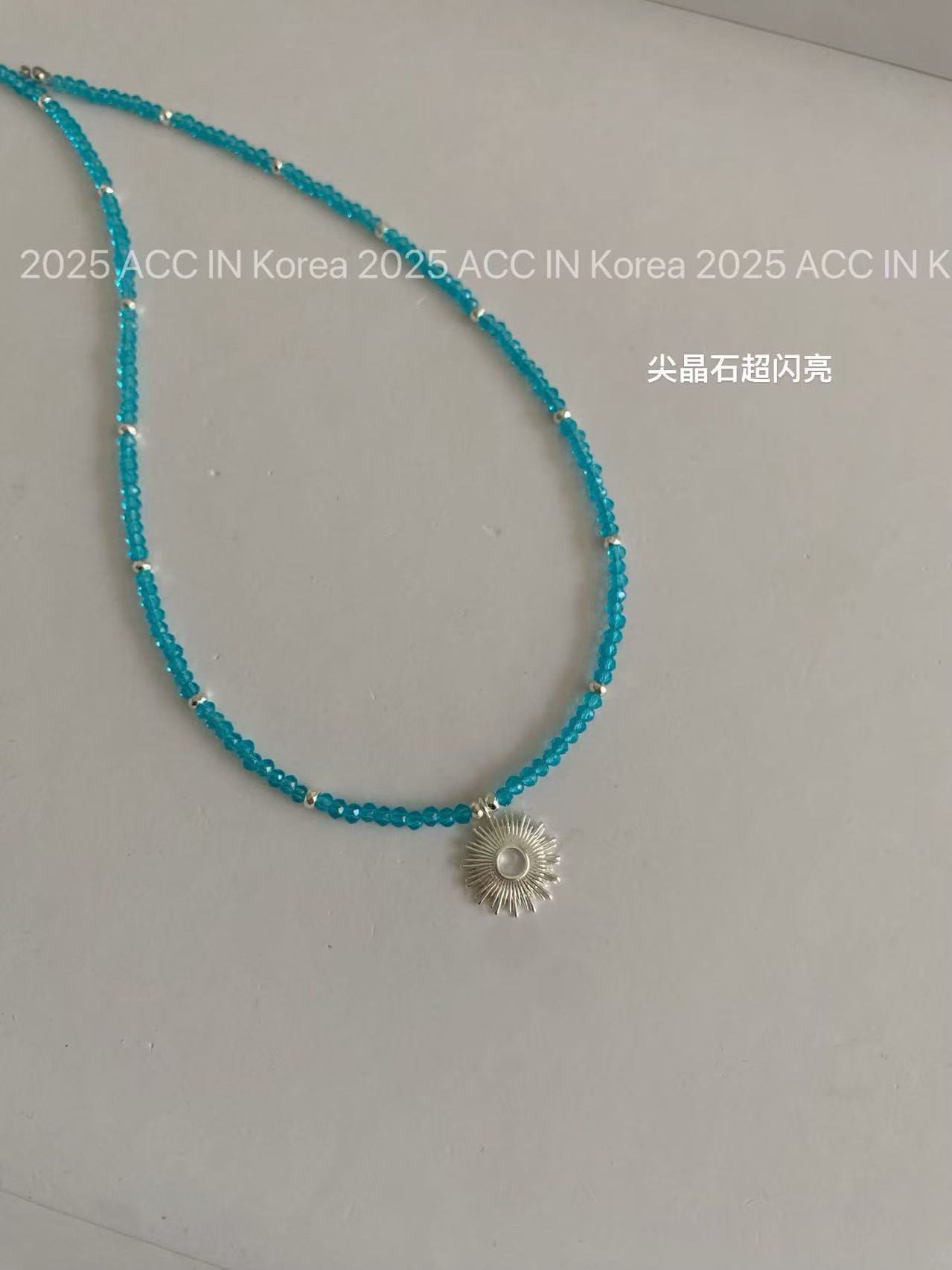 韩国东大门太阳花尖晶石项链女高级锁骨链蓝色淡色系日本项链小众
