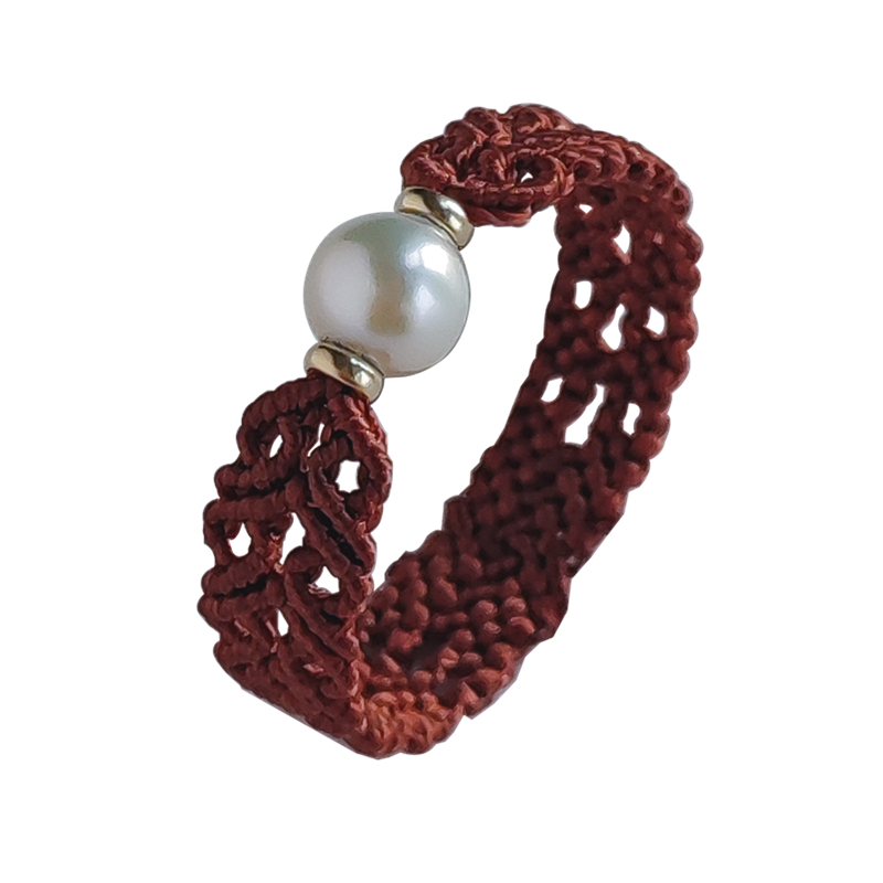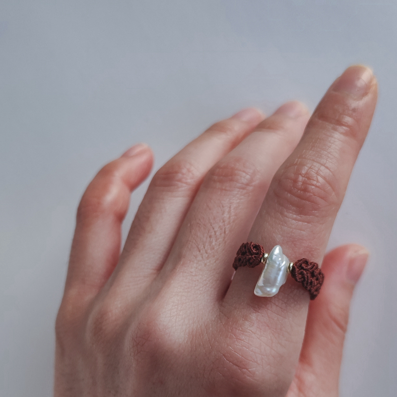 精选天然珍珠手工定制编织心形如意纹理戒指原创设计传统绳编指环