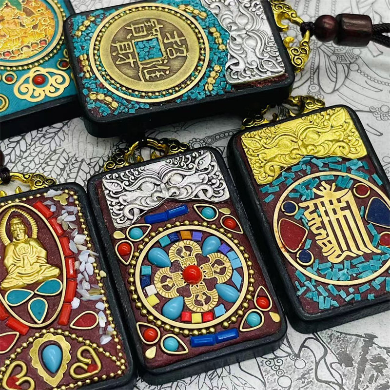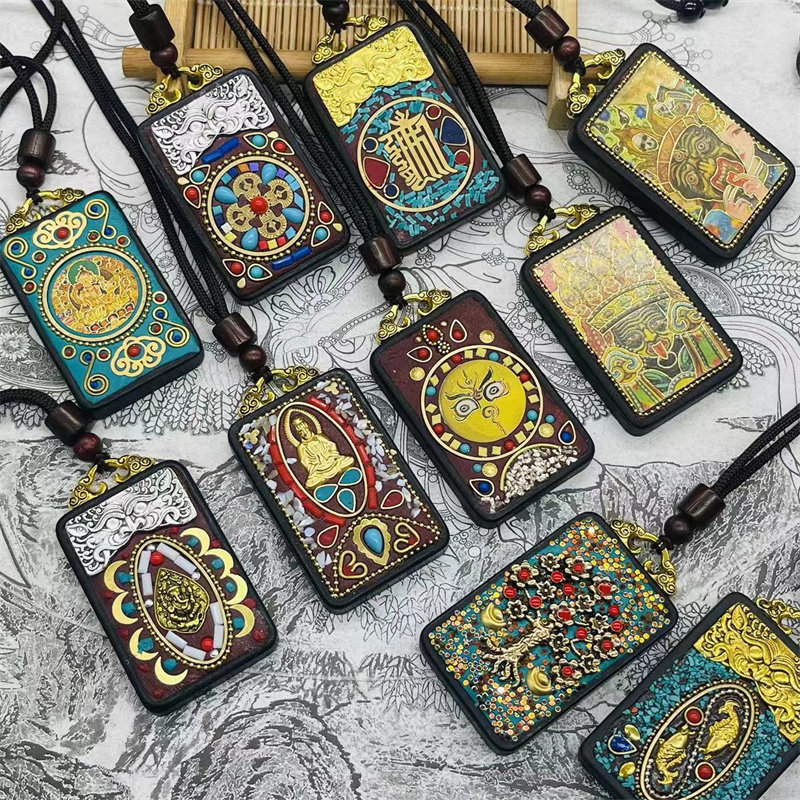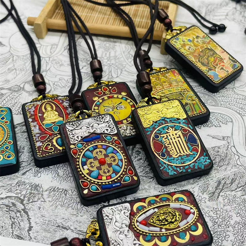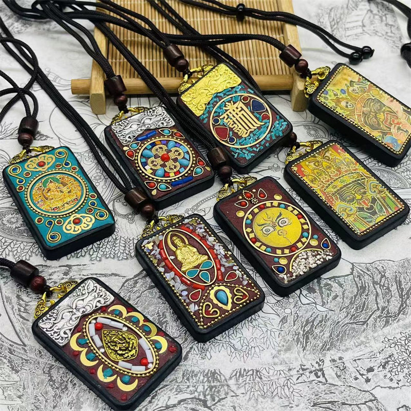 西藏特色纯手工佛牌吊坠扎基拉姆守护神唐卡项坠檀木民族项链男女