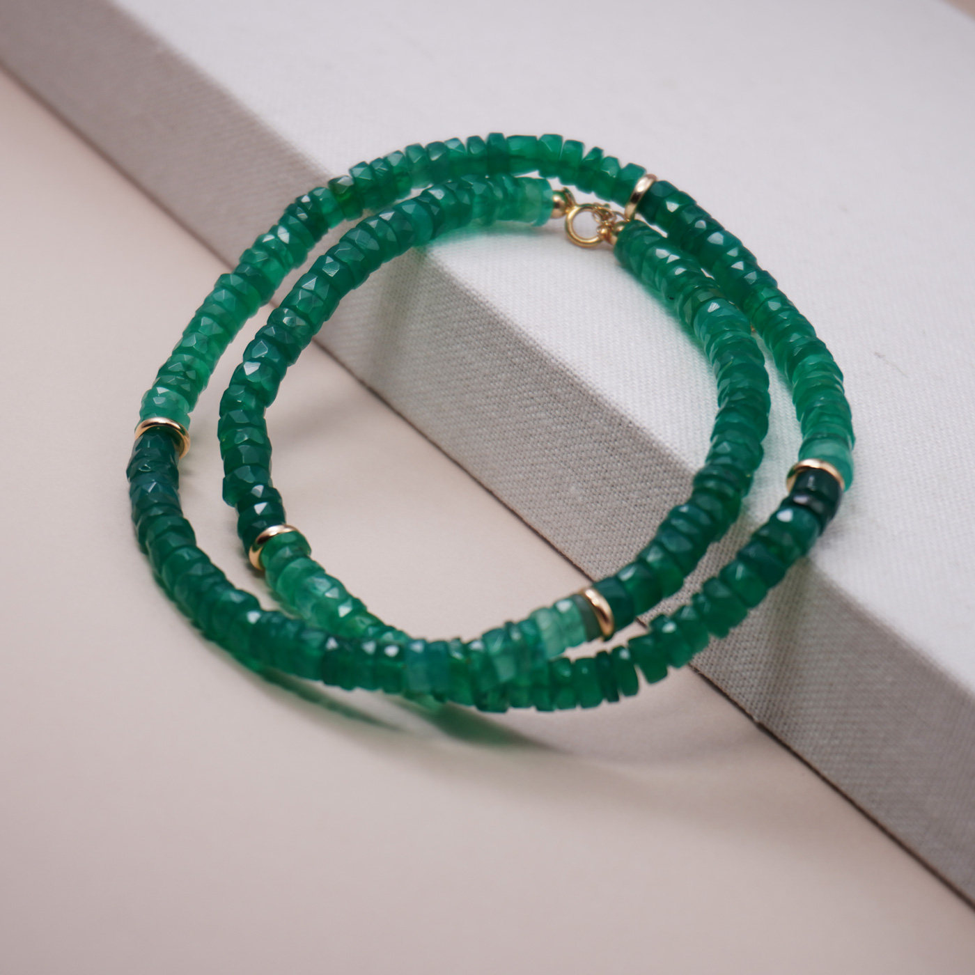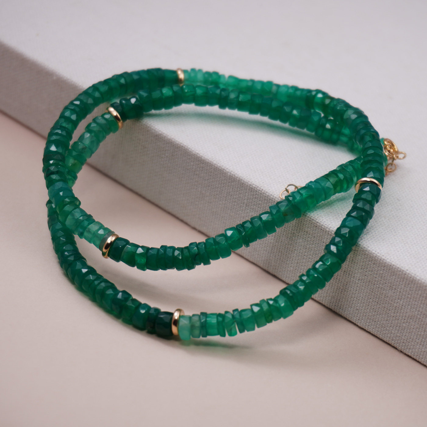 绿玛瑙项链女百搭款串珠祖母绿天然石轻奢项饰饰品切面绿色锁骨链