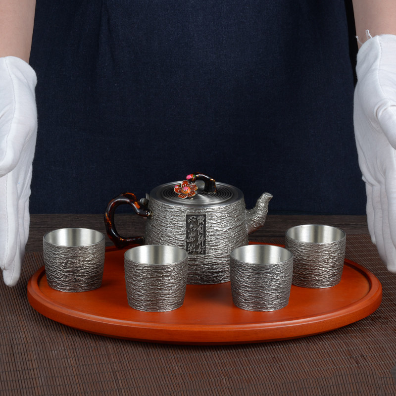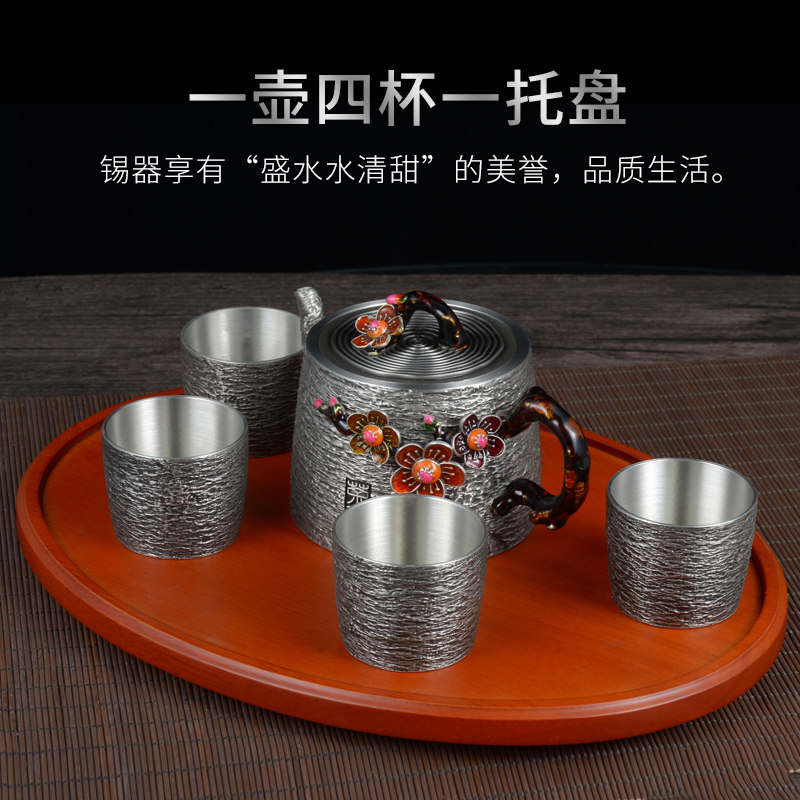 纯锡茶具套装泡茶壶杯子托盘一套轻奢茶道送长辈家用客厅会客摆设