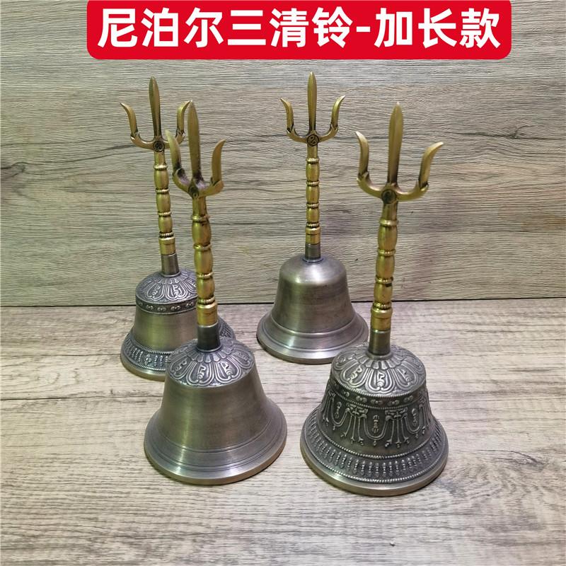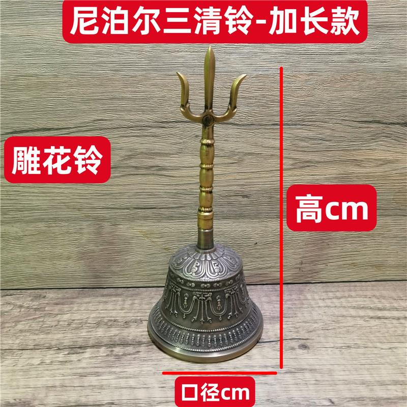 尼泊尔道家三清雕花铃光滑铃金刚结铜铃三叉手摇铃加长款声音响亮