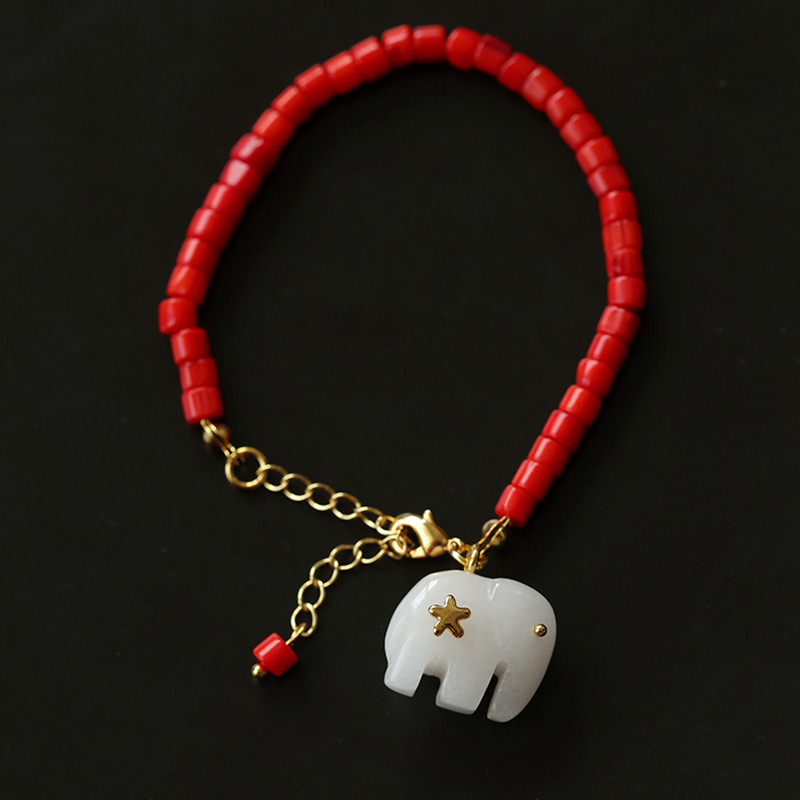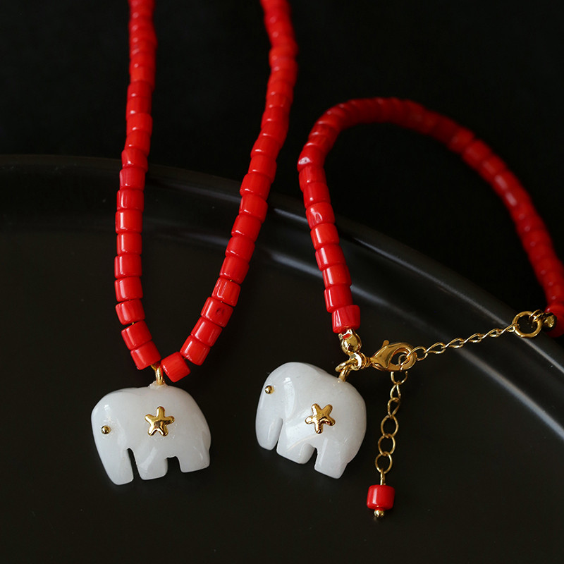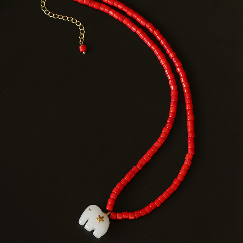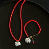 TU家 欧美ins风红色串珠天然石大象吊坠项链手链波西米亚叠搭颈链