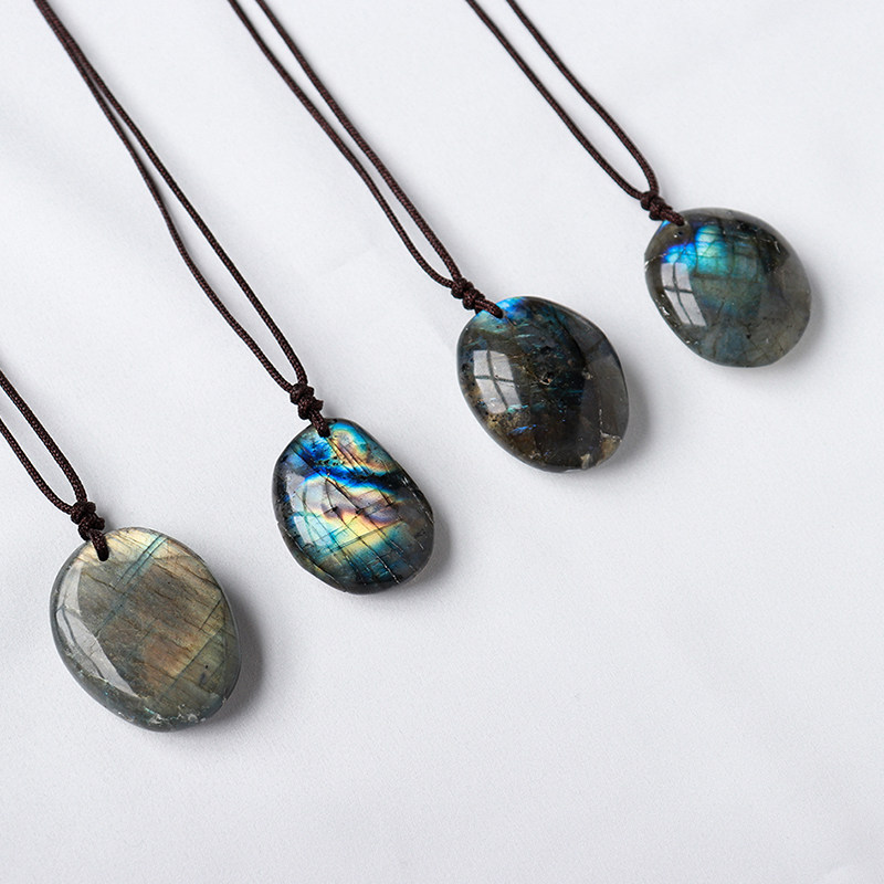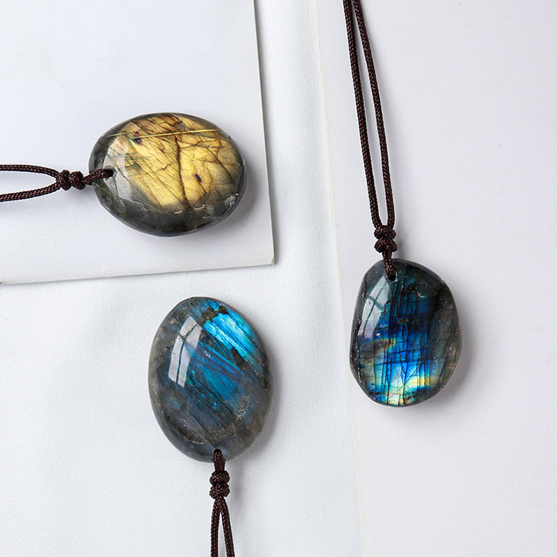 天然水晶拉长石圆形民族风吊坠火彩月光石男女款消磁项链项坠饰品
