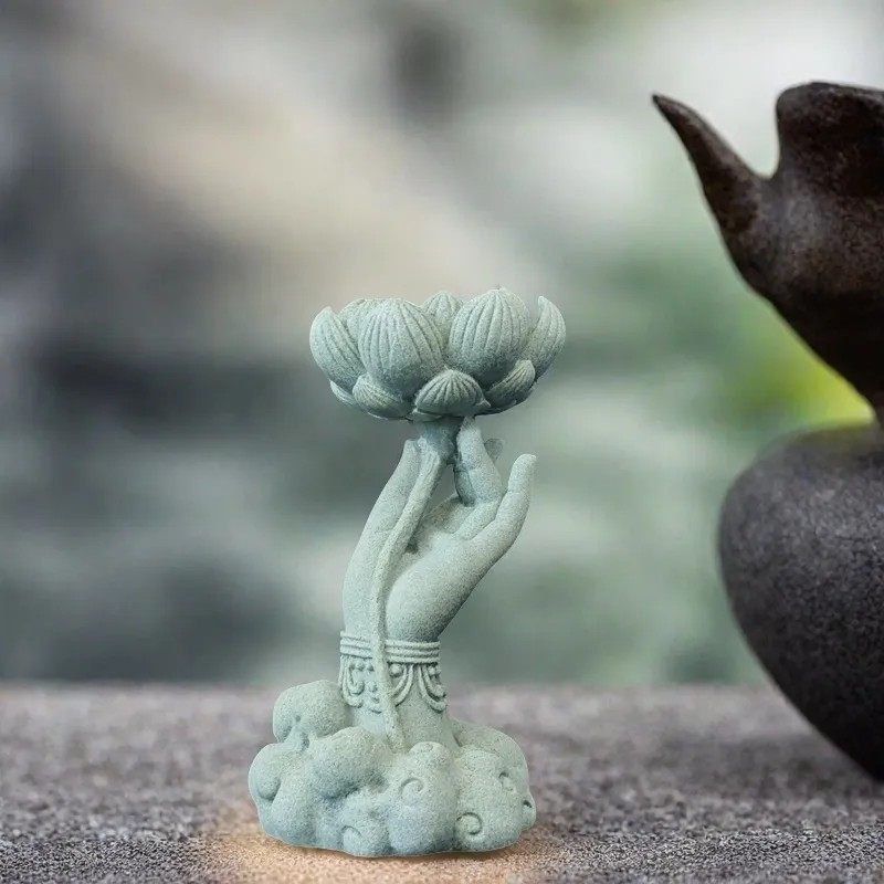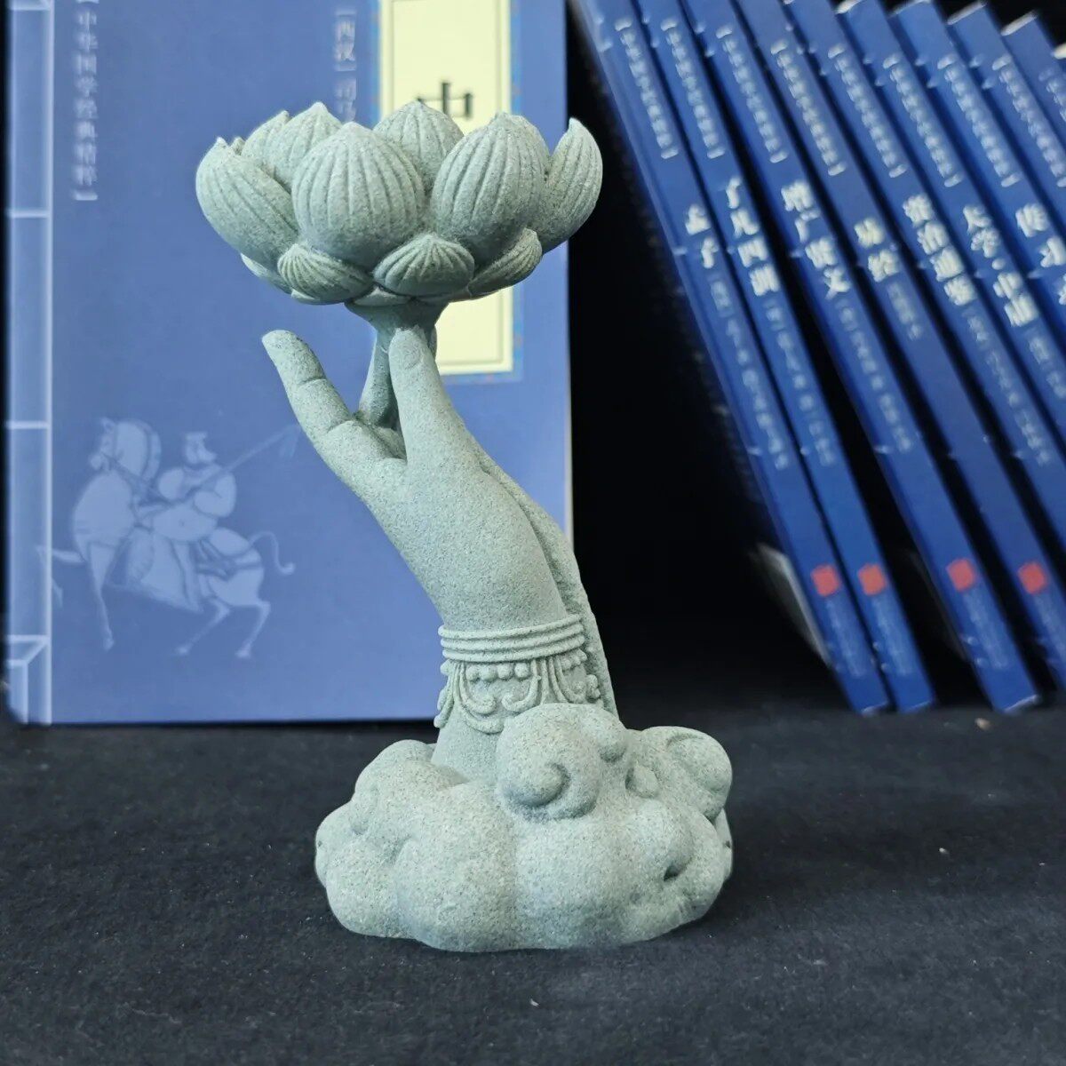 青砂石佛手莲花创意摆件家用鱼缸造景装饰品国潮文创茶宠摆设