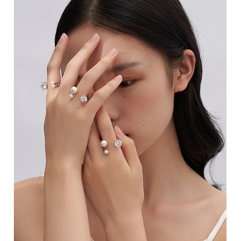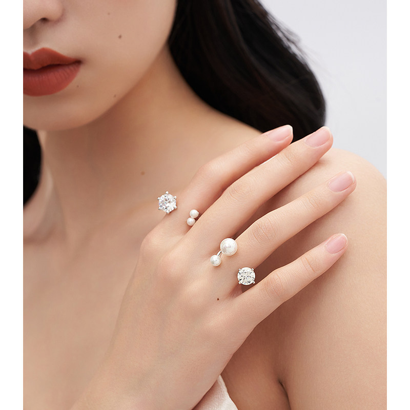 PoeticTwinkle原创 泡泡系列水晶珍珠钻ins小众设计纯银开口戒指