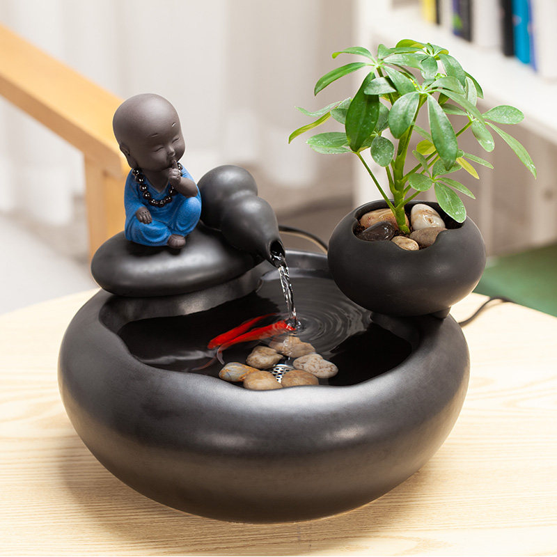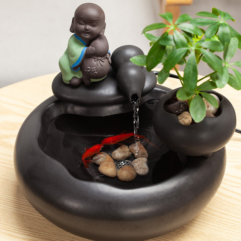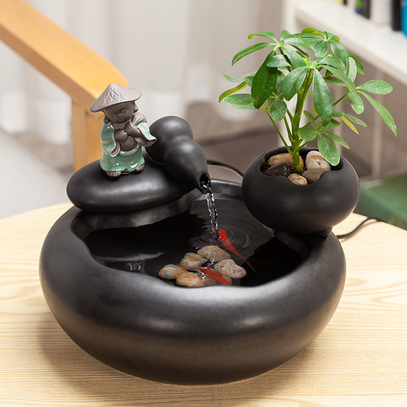 陶瓷流水摆件盆栽家居玄关办公室桌面水景招财小鱼缸创意喷泉礼品