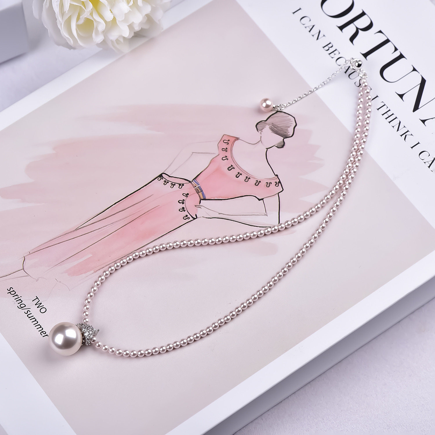 花千树珠宝 施家珍珠小米珠澳白色项链冰雪款吊坠百搭气质项链