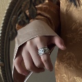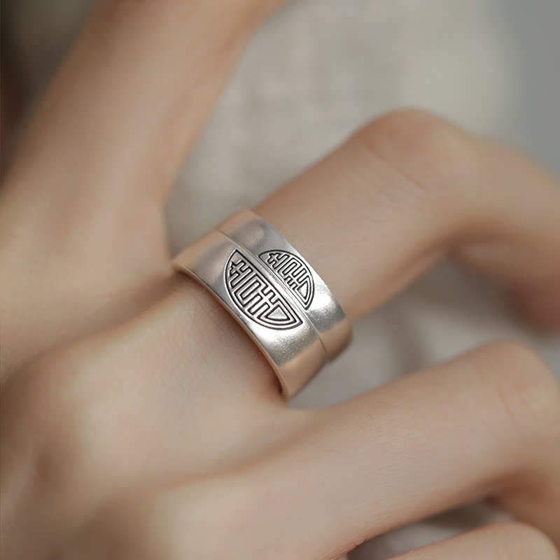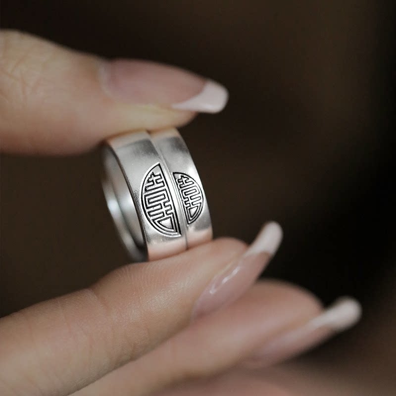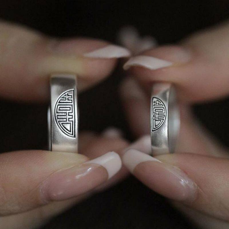 复古925银双喜戒指新中式国风小众高级感百搭开口可调节情侣对戒
